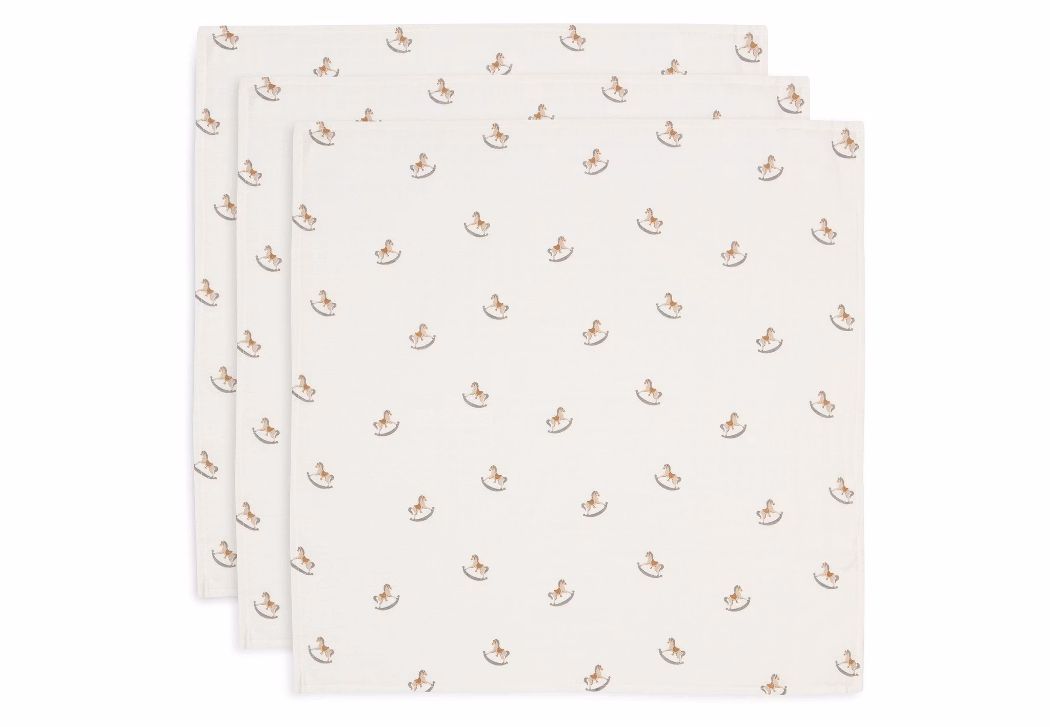 Fina muslinfiltar i 3-pack från märket Jollein. Tvättas i 60 grader innan användning så blir den riktigt mjuk och gosig.100% bomull70x70cm