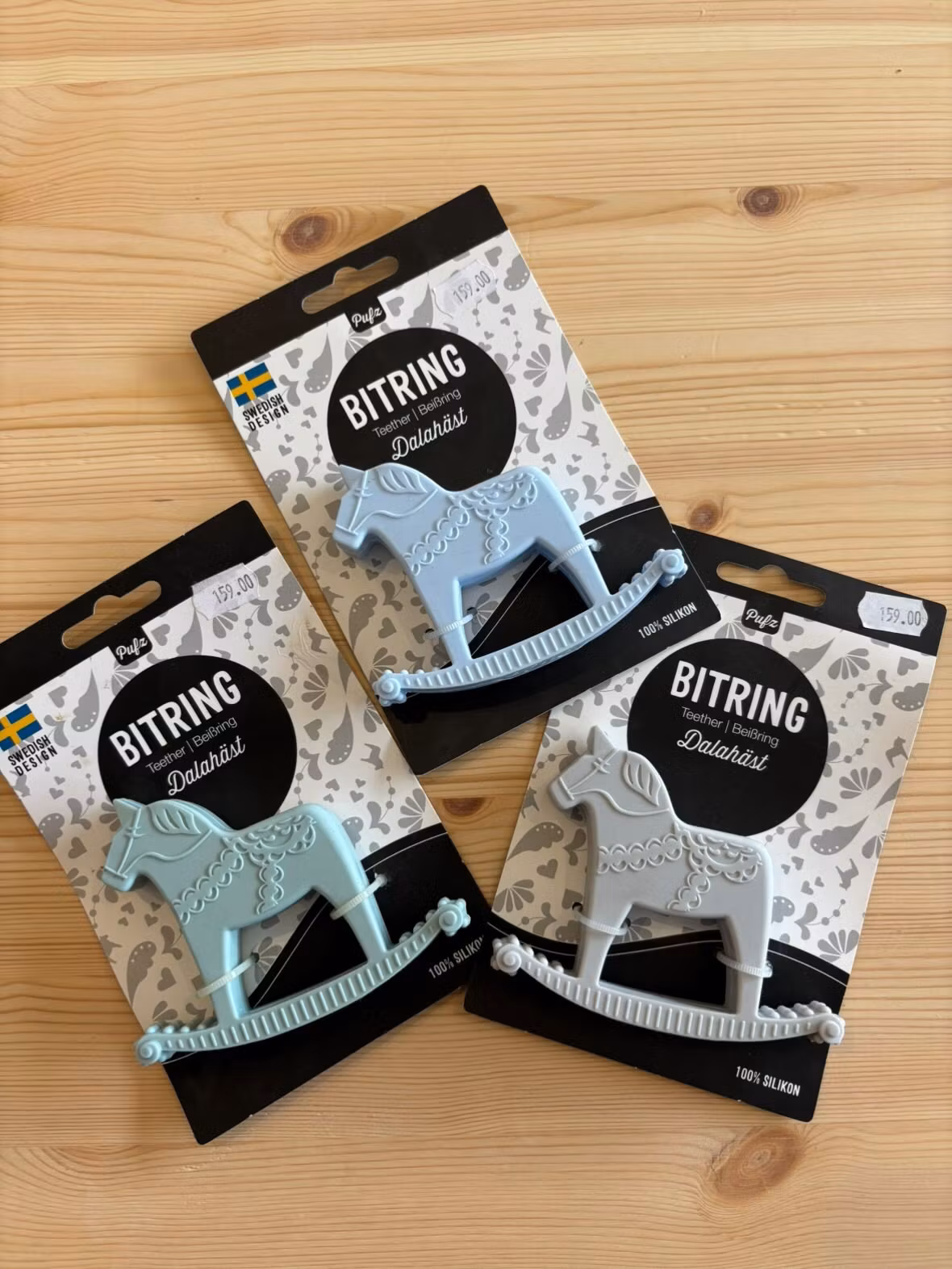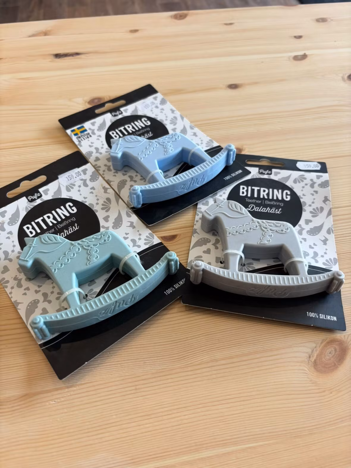 Fin bitring i form av Dalahäst för de små barnen. Gjord i 100% silikon och är designade i Sverige. Bitningen från Pufz är också livsmedelsklassad, den tål kokni