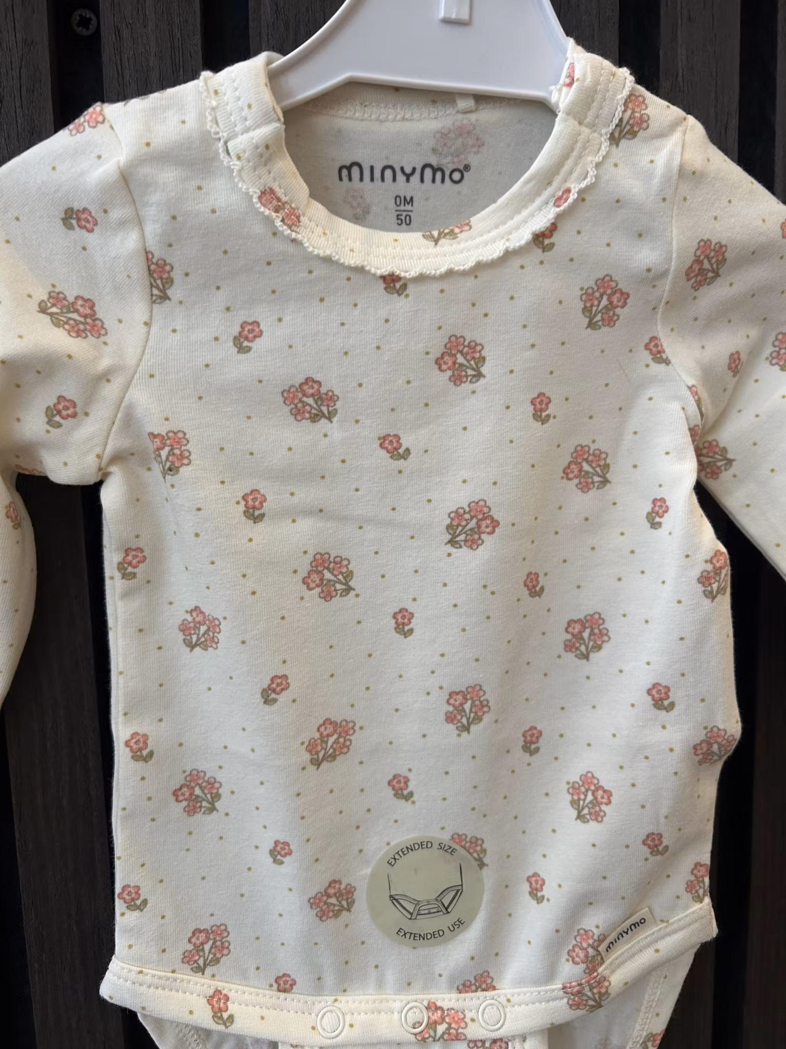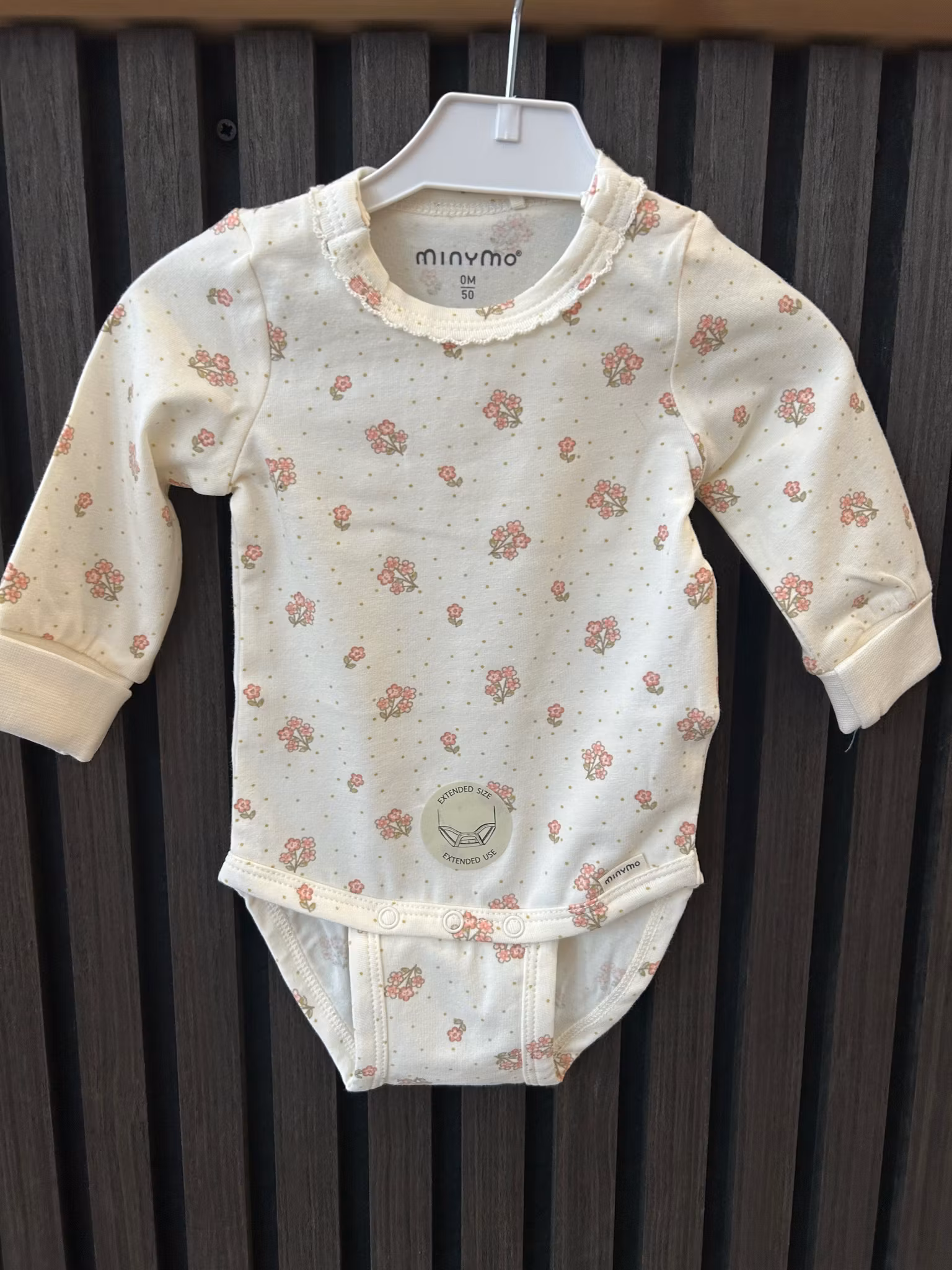 Body med liten spetskrage i halsen, blommor i rosa färg samt prickar.passar fint med ribbad leggings ( ribbad leggings rosy tough)märke: minymo