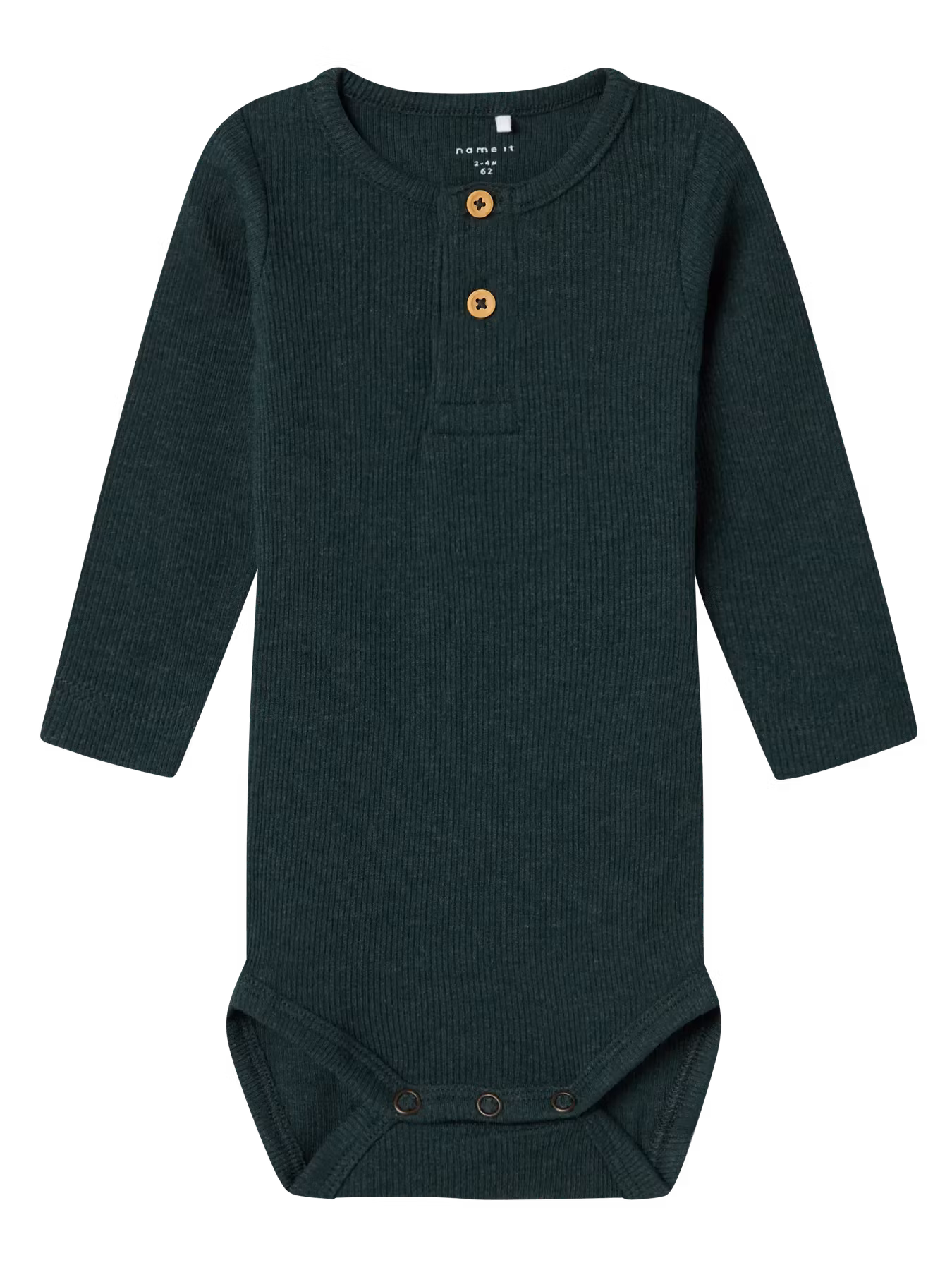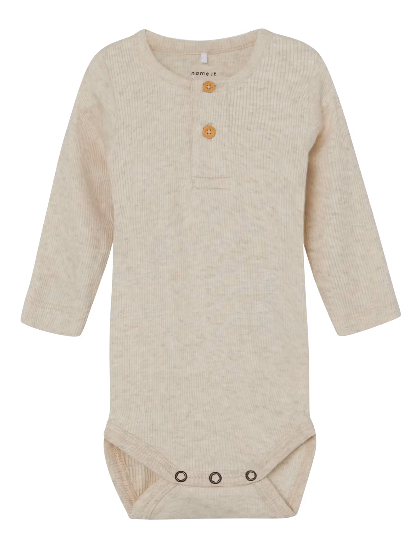 Ribbad body med långärm, basplagget alla behöver i garderoben!57% Bomull, 38% modal & 5% elastaneMärke: Name it