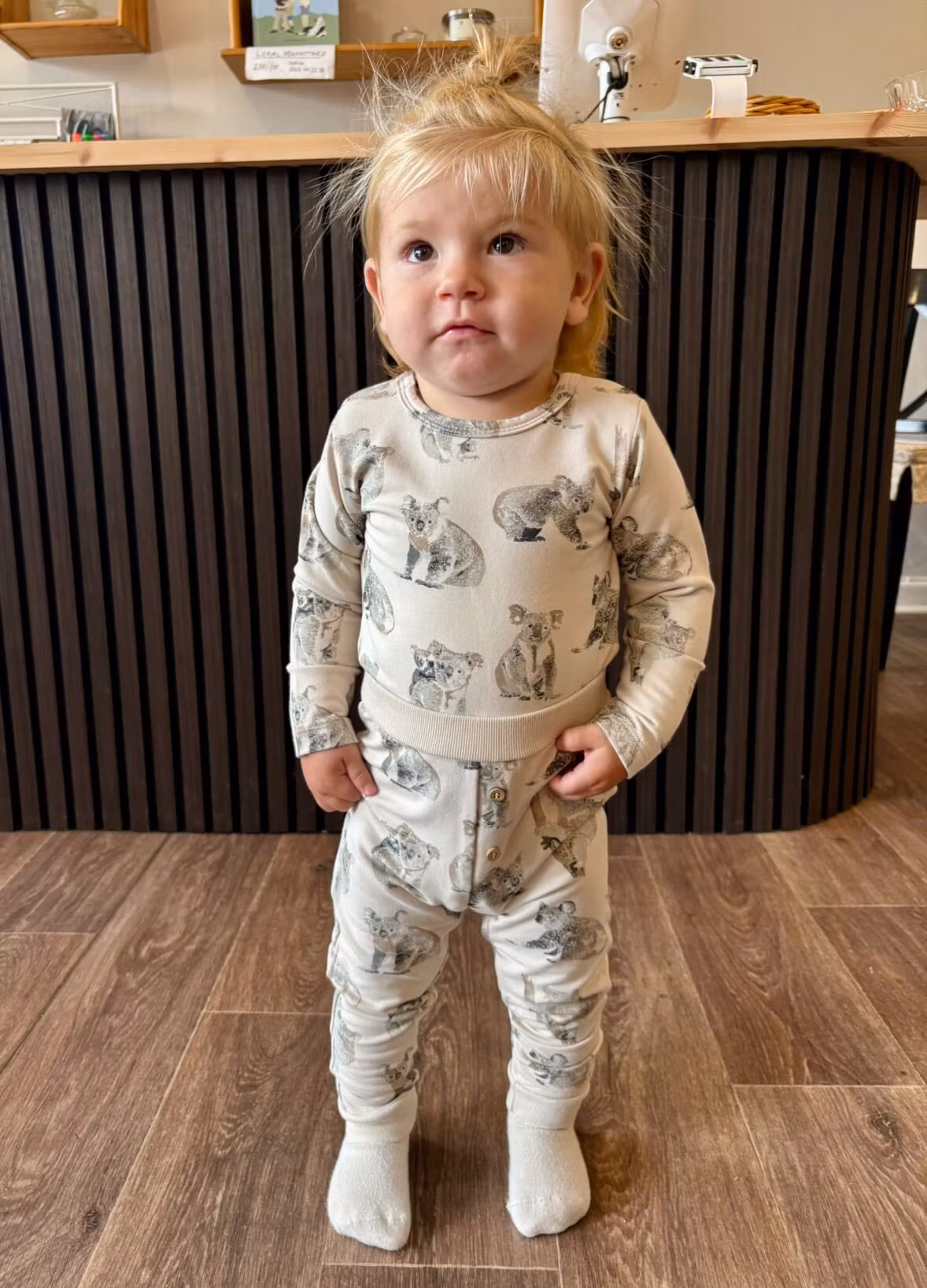 Mysigt mönster med koalor.Märke: Minymo65% viskos, 30% bomull, 5% elastan