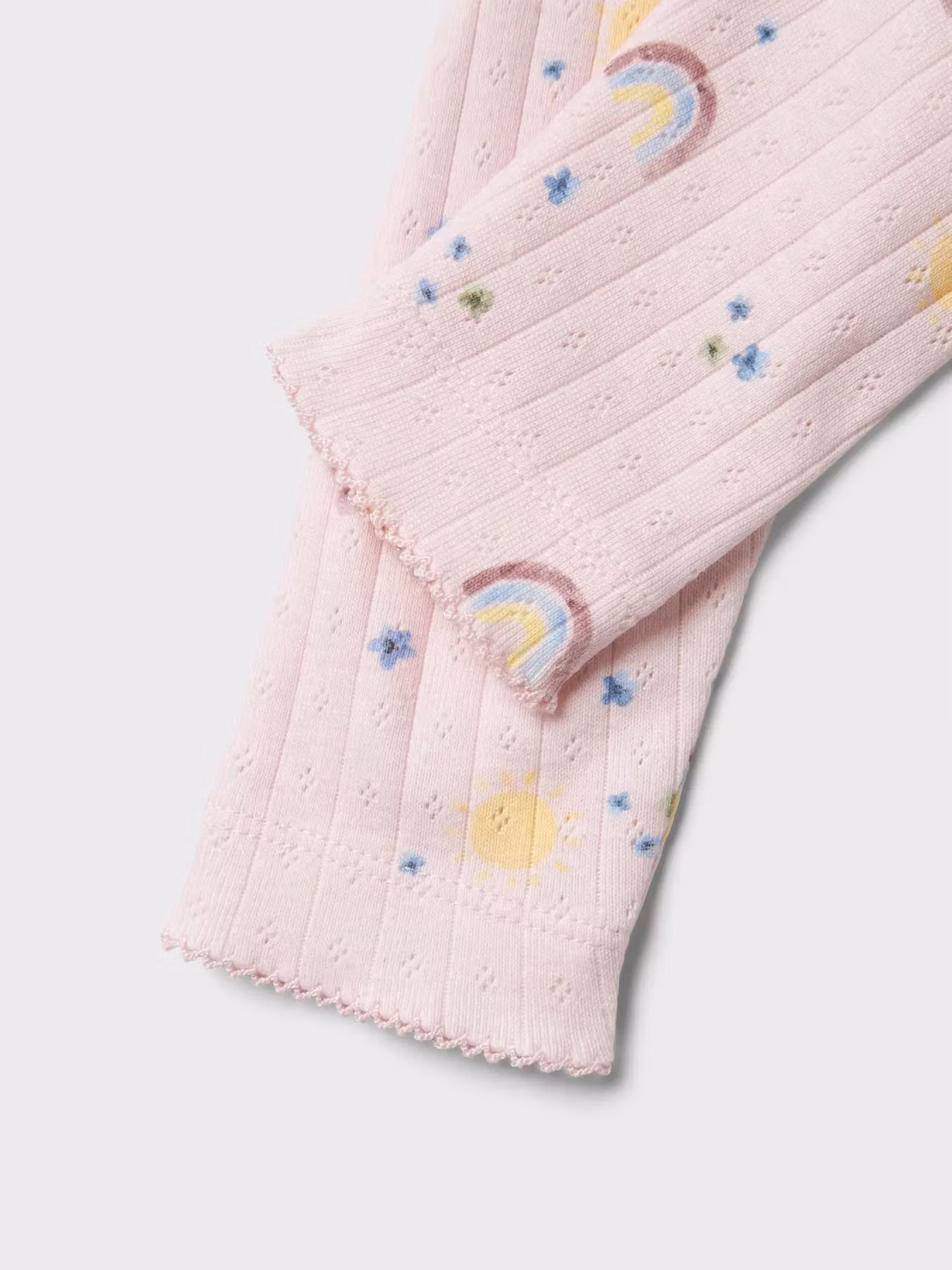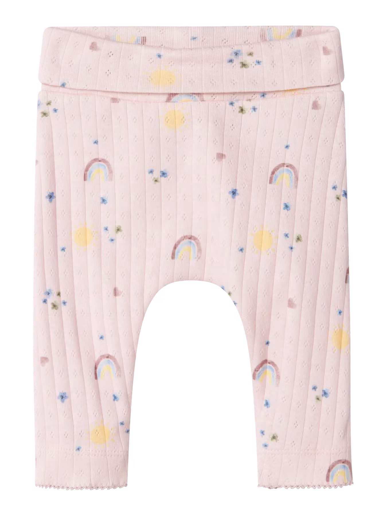 Byxa med mudd i midjan och fina regnbågar.Märke: Name it