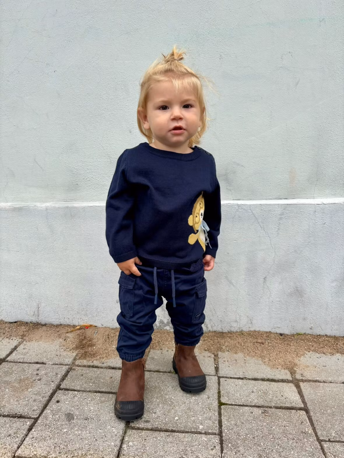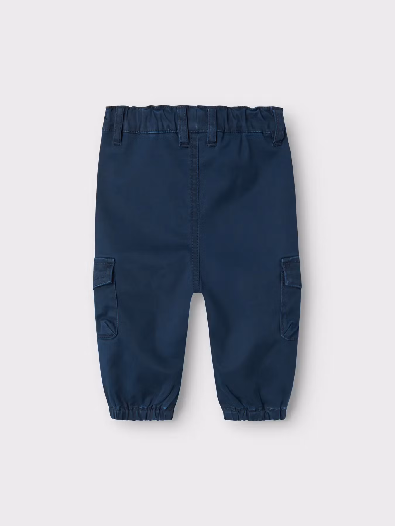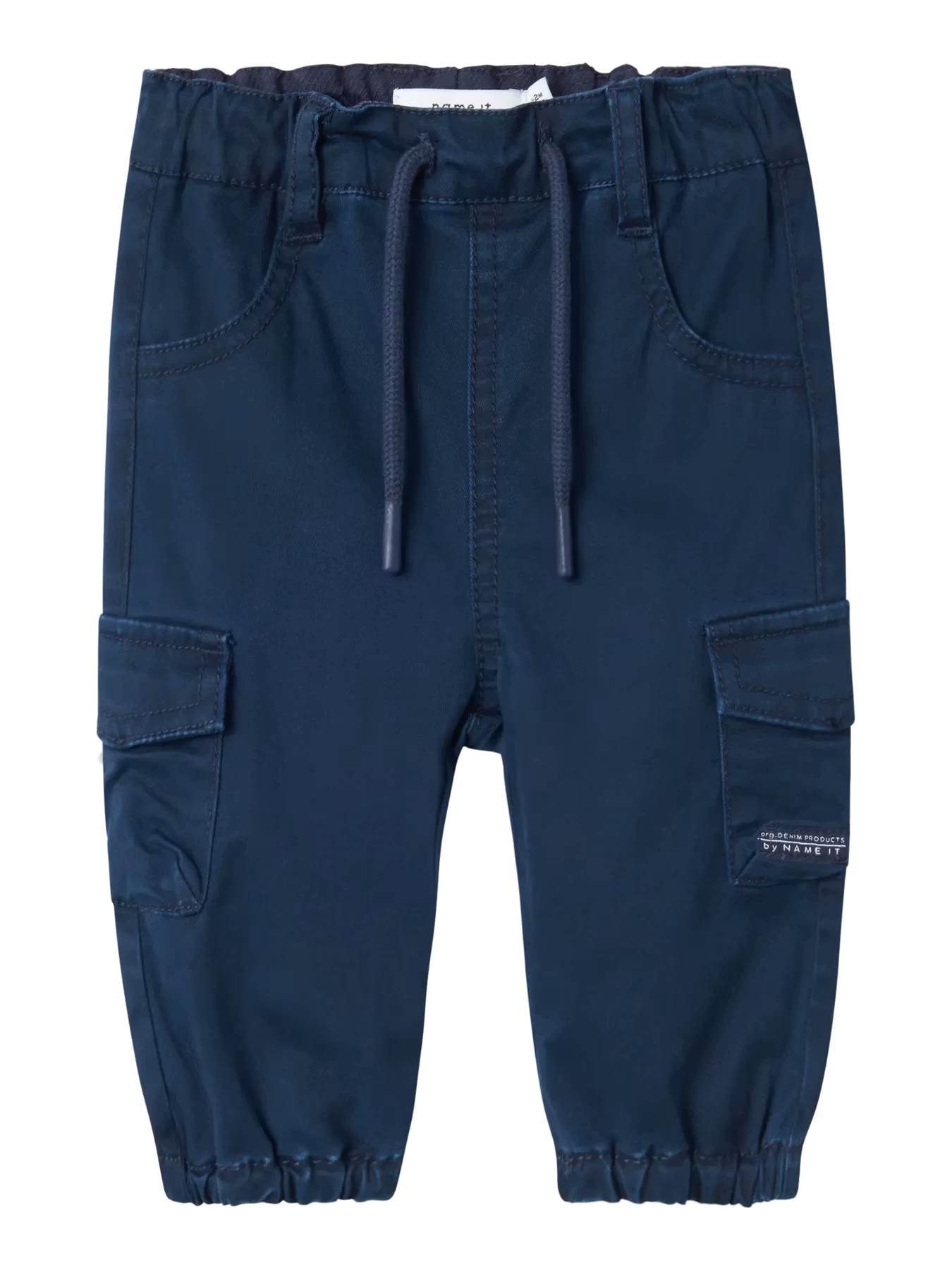 Grymt snygga cargobyxor med fickor på benen, snöre i midjan och mudd i benslut.95% bomull och 5% elastaneMärke: Name it