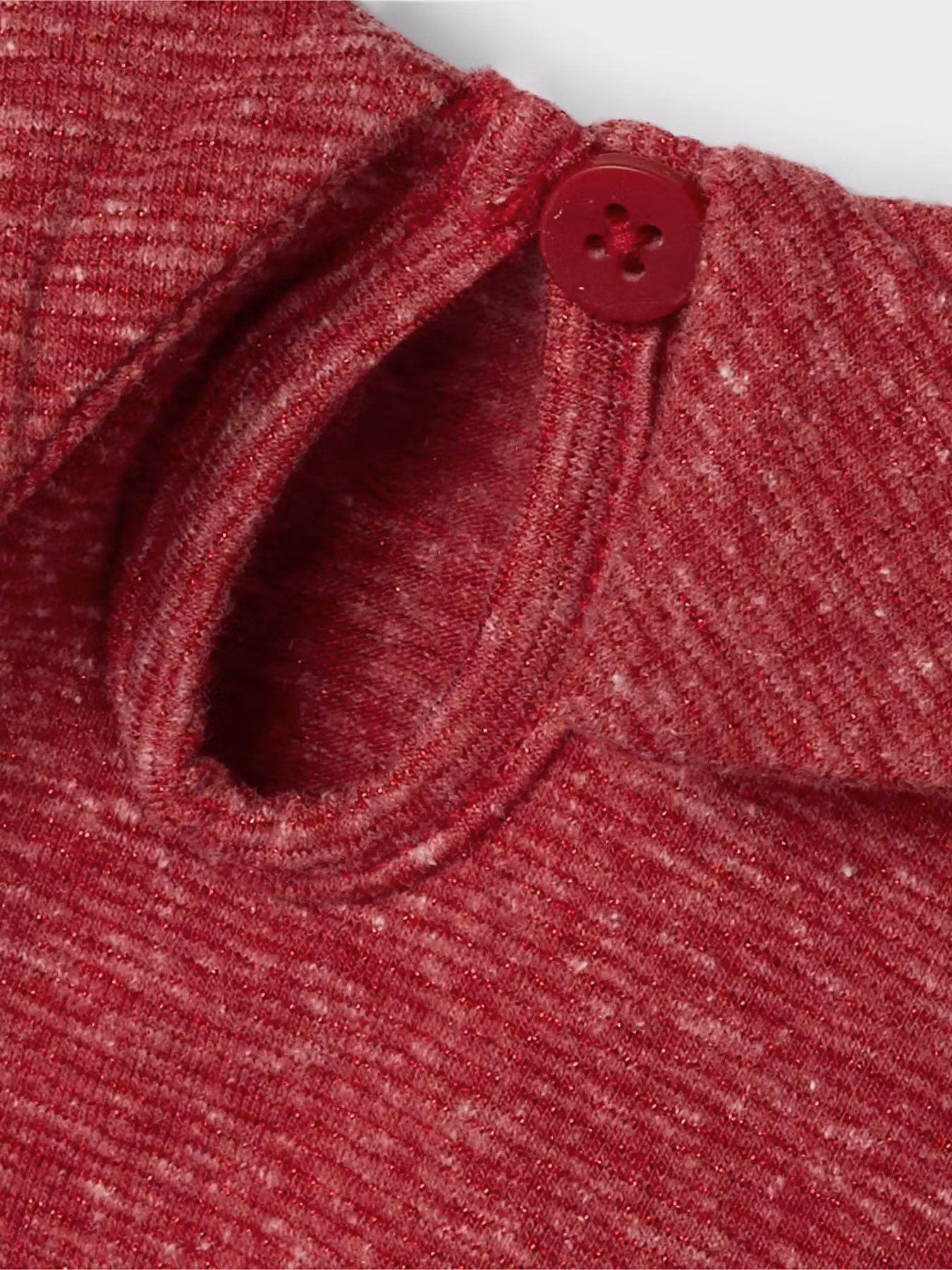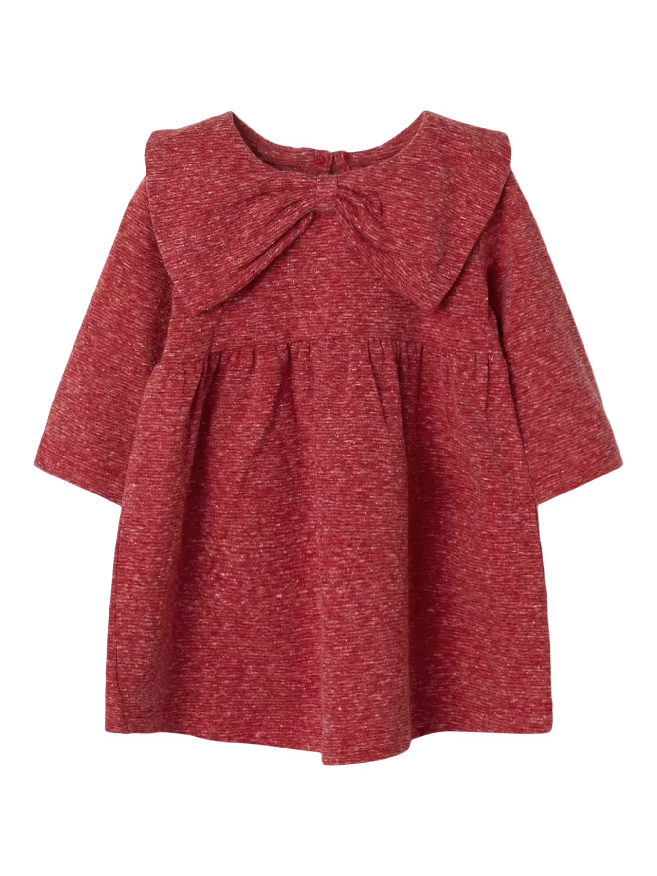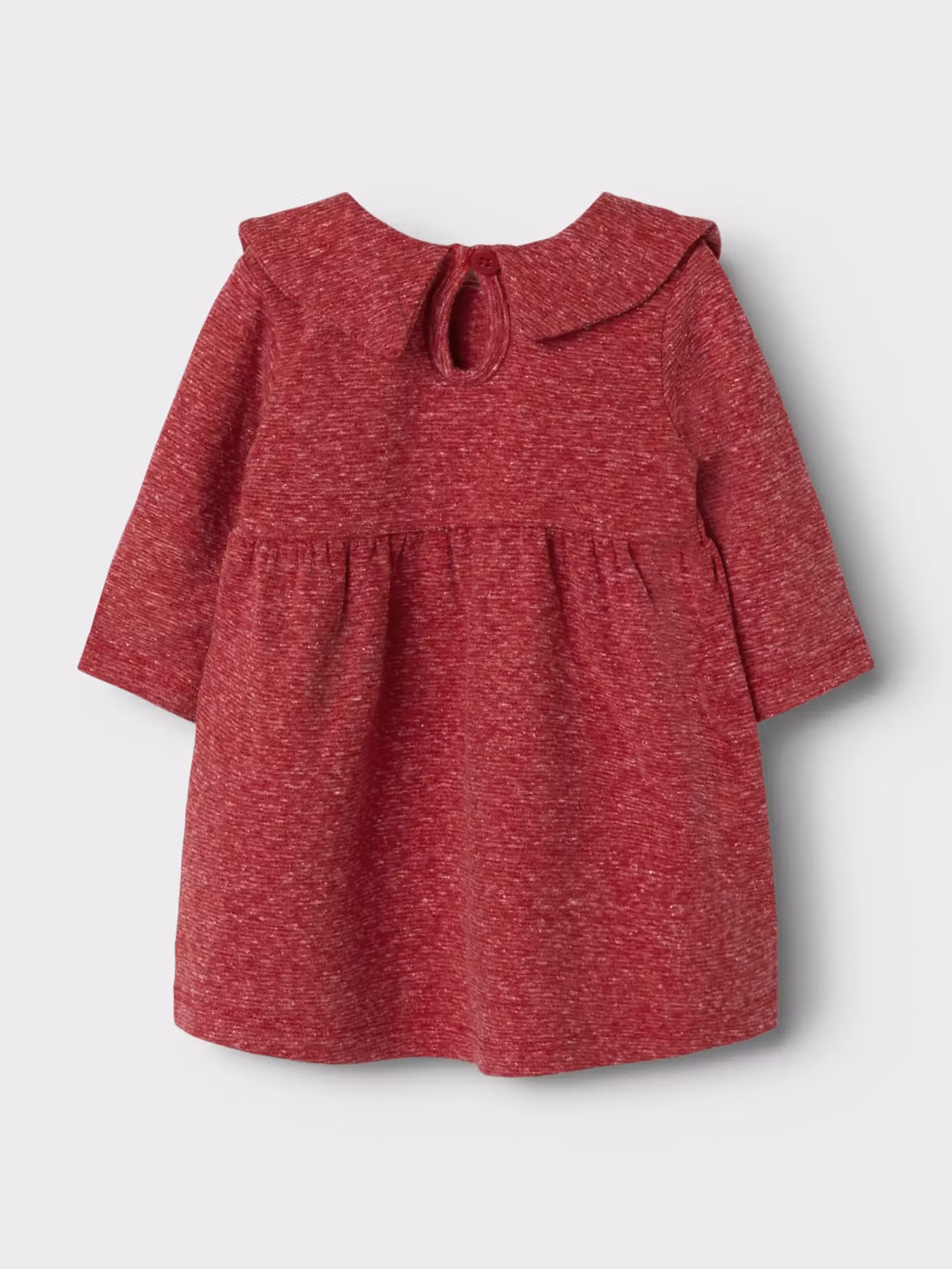 Fin julklänning till de allra minsta tjejerna. Mjuk och härligt material med fina detaljer såsom en dekorativ krage fram till, samt guld glittertrådar i för att ge klänningen lite liv.