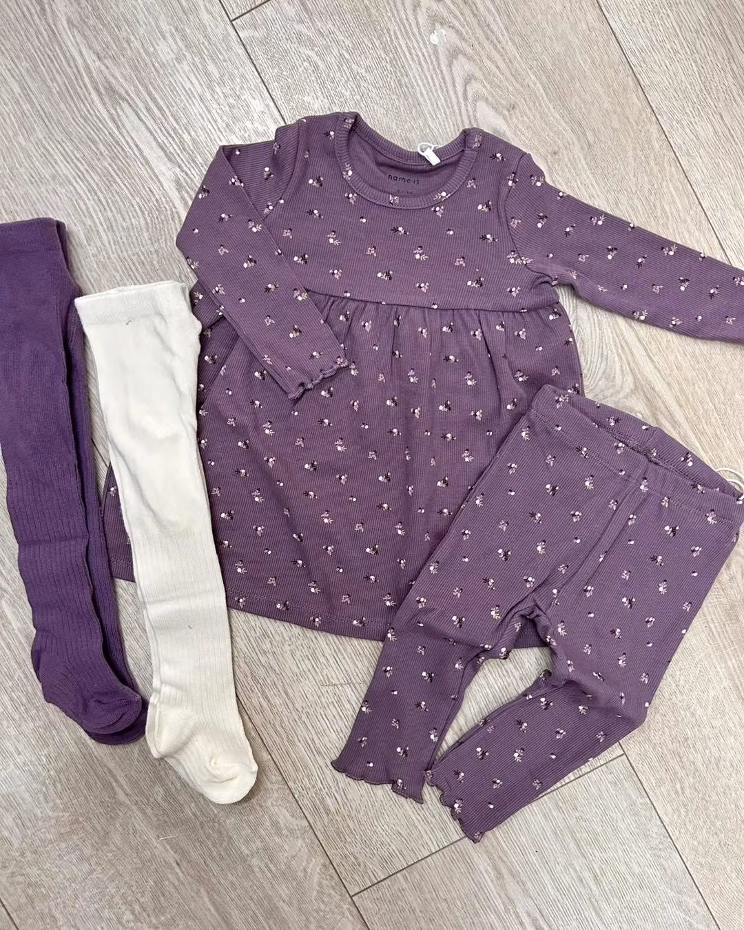 Ribbad leggings med volang i benslutet och print med blommor.Märke: Name it
