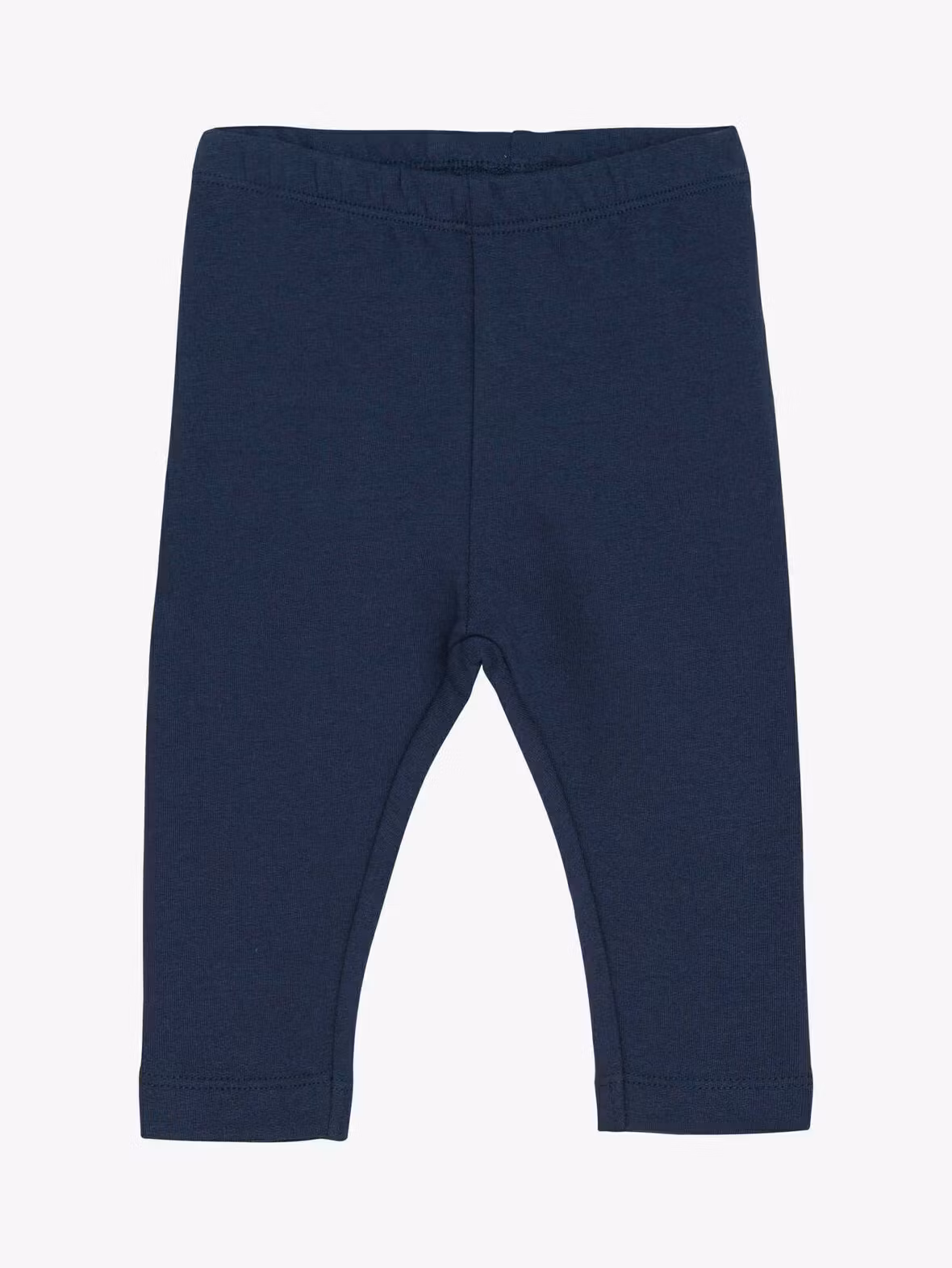Leggings i mycket mjukt material från Minymo.Med tanke på dess mörkblå färg funkar de att matcha till många olika ovandelar. Förslagsvis body med fordon eller b