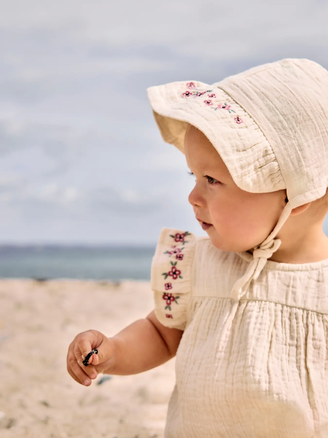 Solhatt med virkade detalljer100% organic bomullmärke; name it