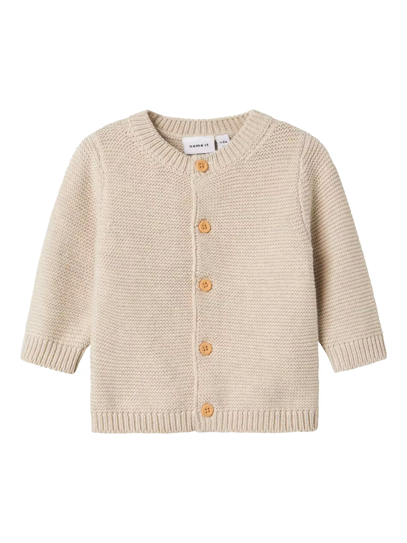 Stickad kofta, passar till både flick och pojk, med träknappar som detalj.Märke: Name it