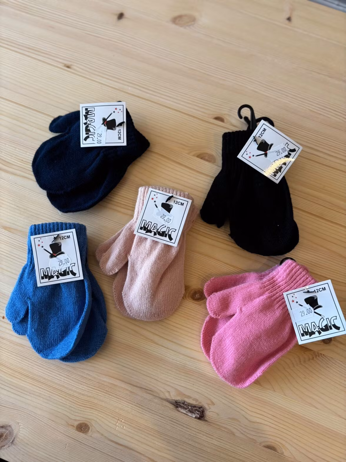 Tunna tumvantar i olika färger.Storlek 12cmHar ett praktiskt snöre mellan de båda vantarna för att förhindra att tappa bort dem.
