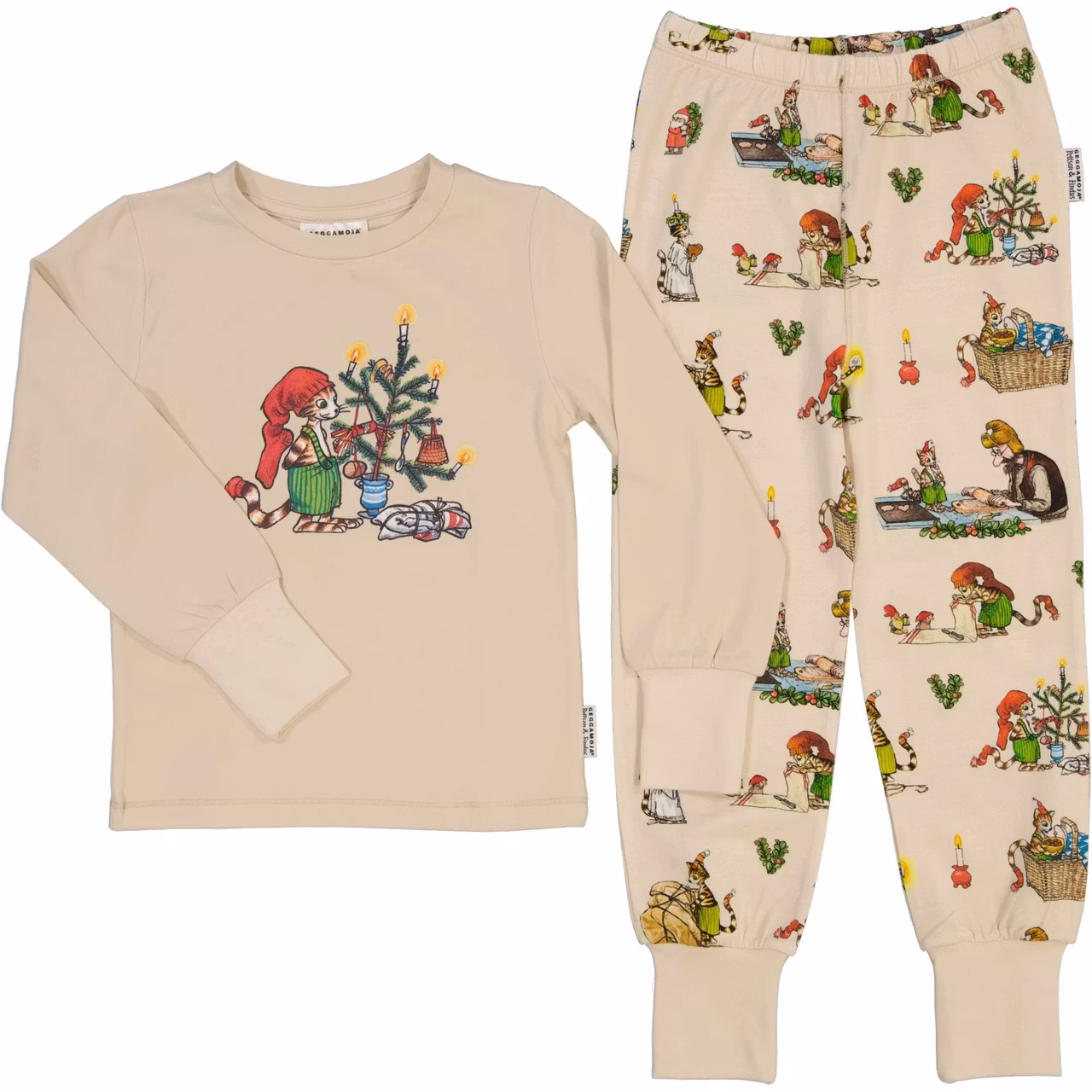 SÄLJSTART 14/10 10.00Finaste julpyjamasen med Pettson & Findus på, en klassiker från Geggamoja.Tillverkad i ekologisk bommul.Breda muddar - perfekt om den ä