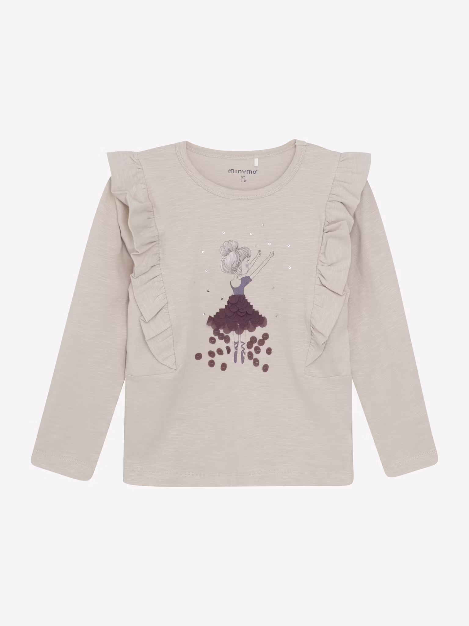 Långärmad tshirt med volang, tryck på magen i form av ballerina.Märke: Minymo95% bomull och 5% elastane