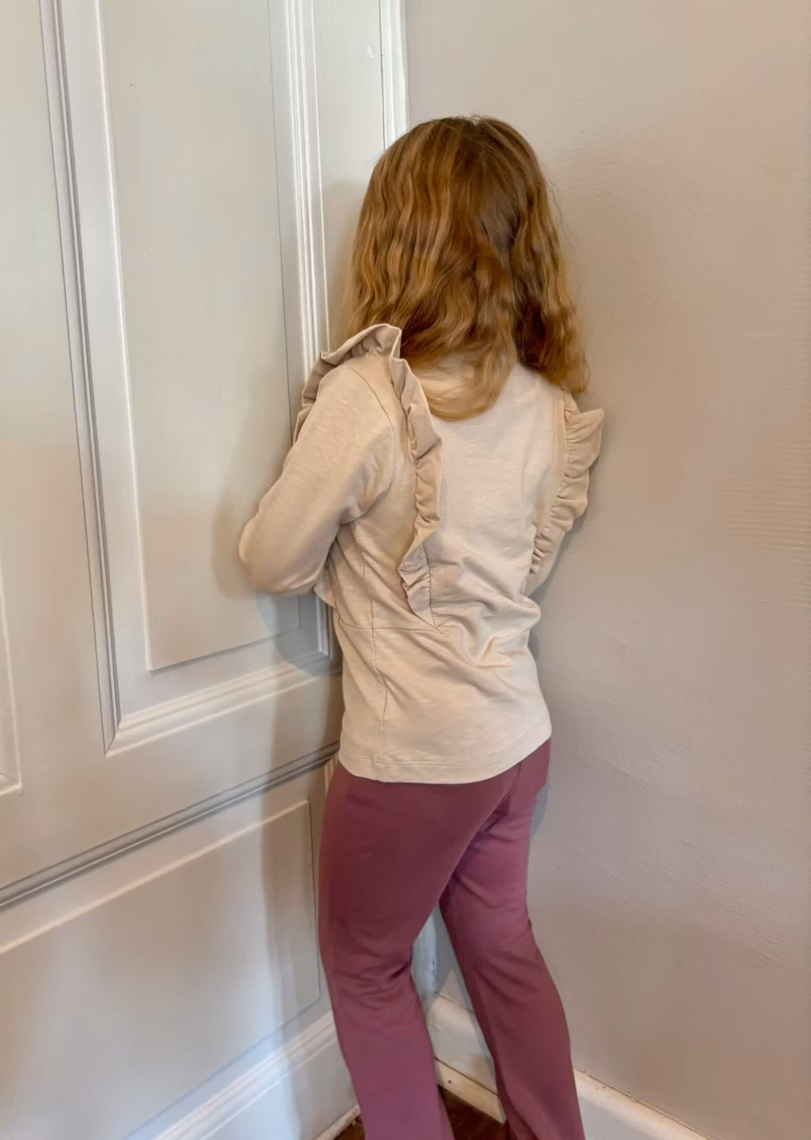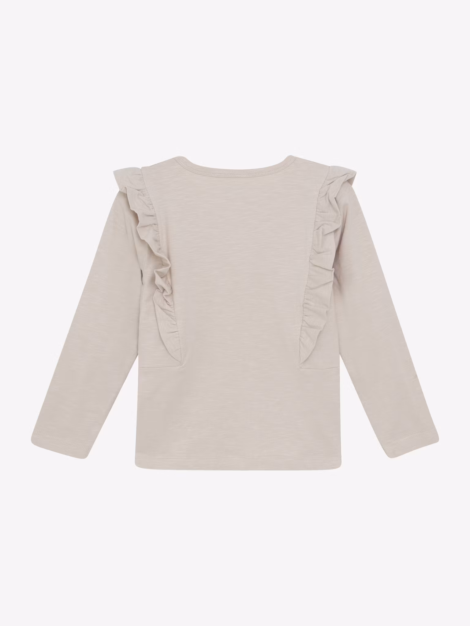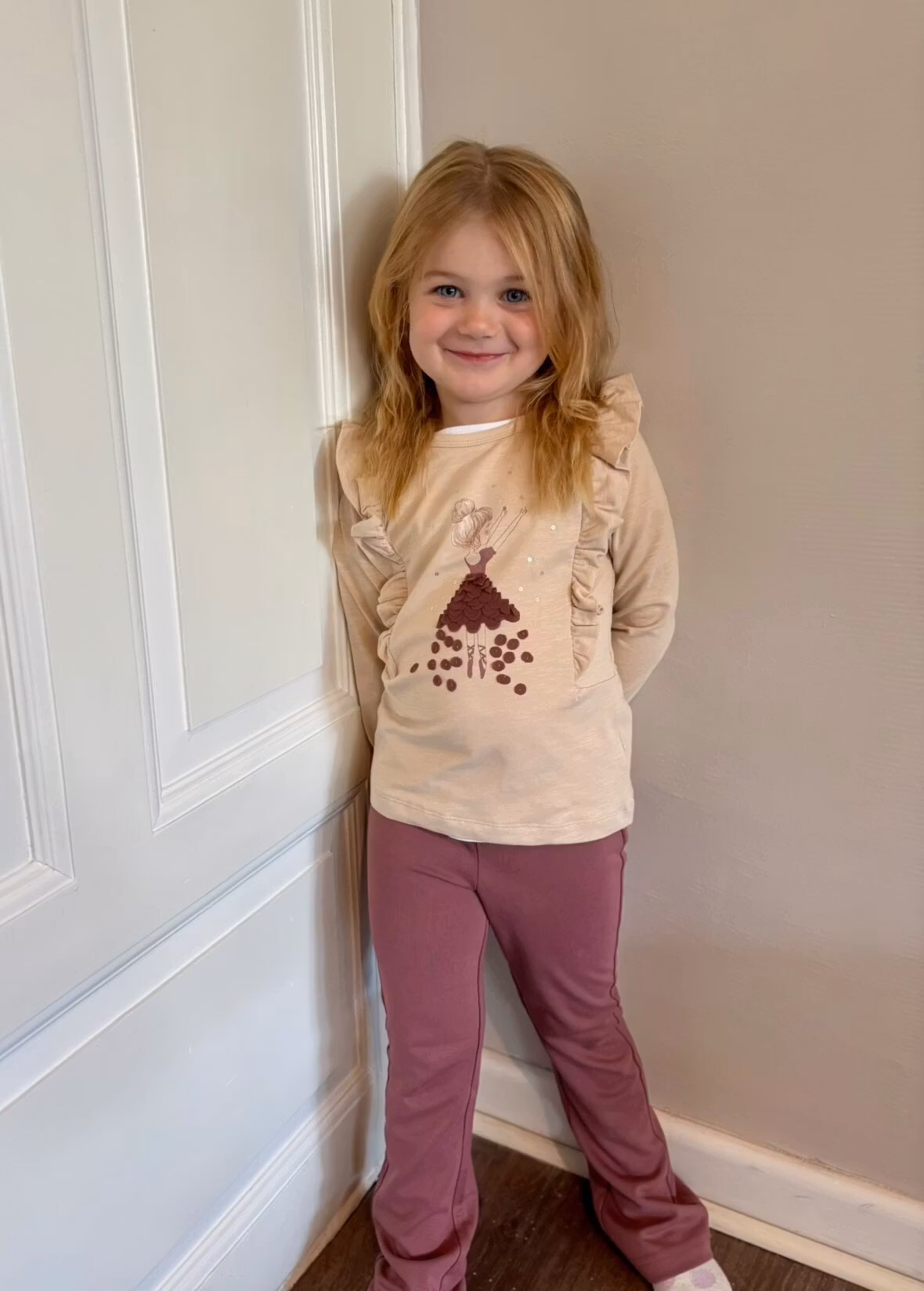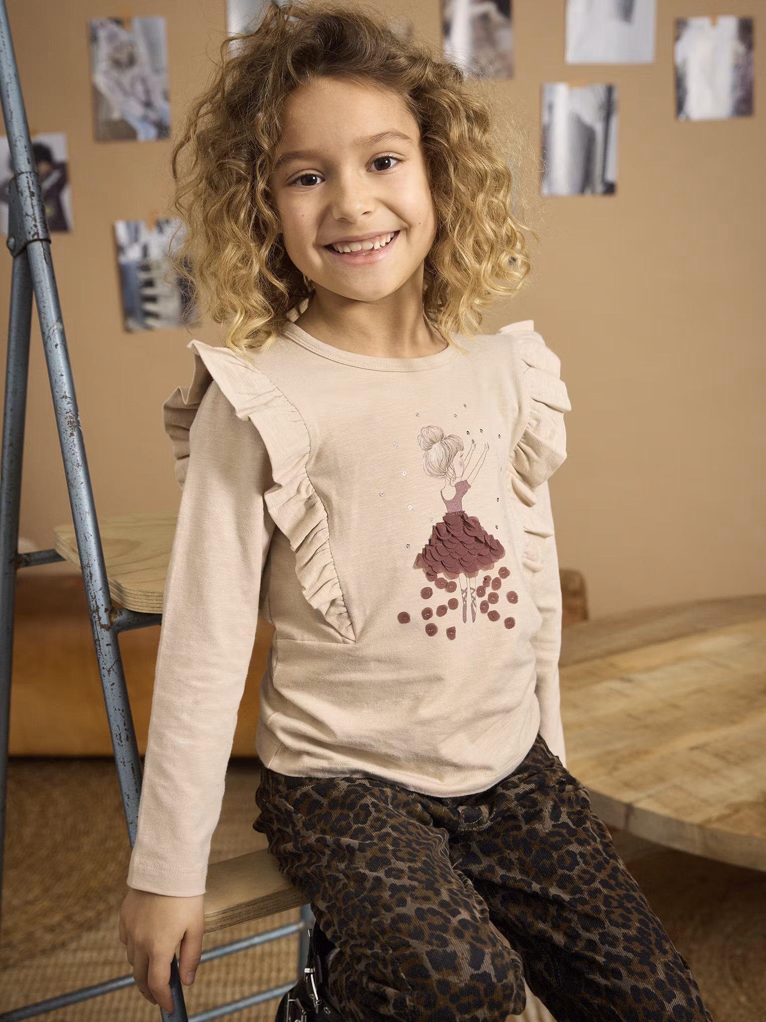 Långärmad tshirt med volang, tryck på magen i form av ballerina.