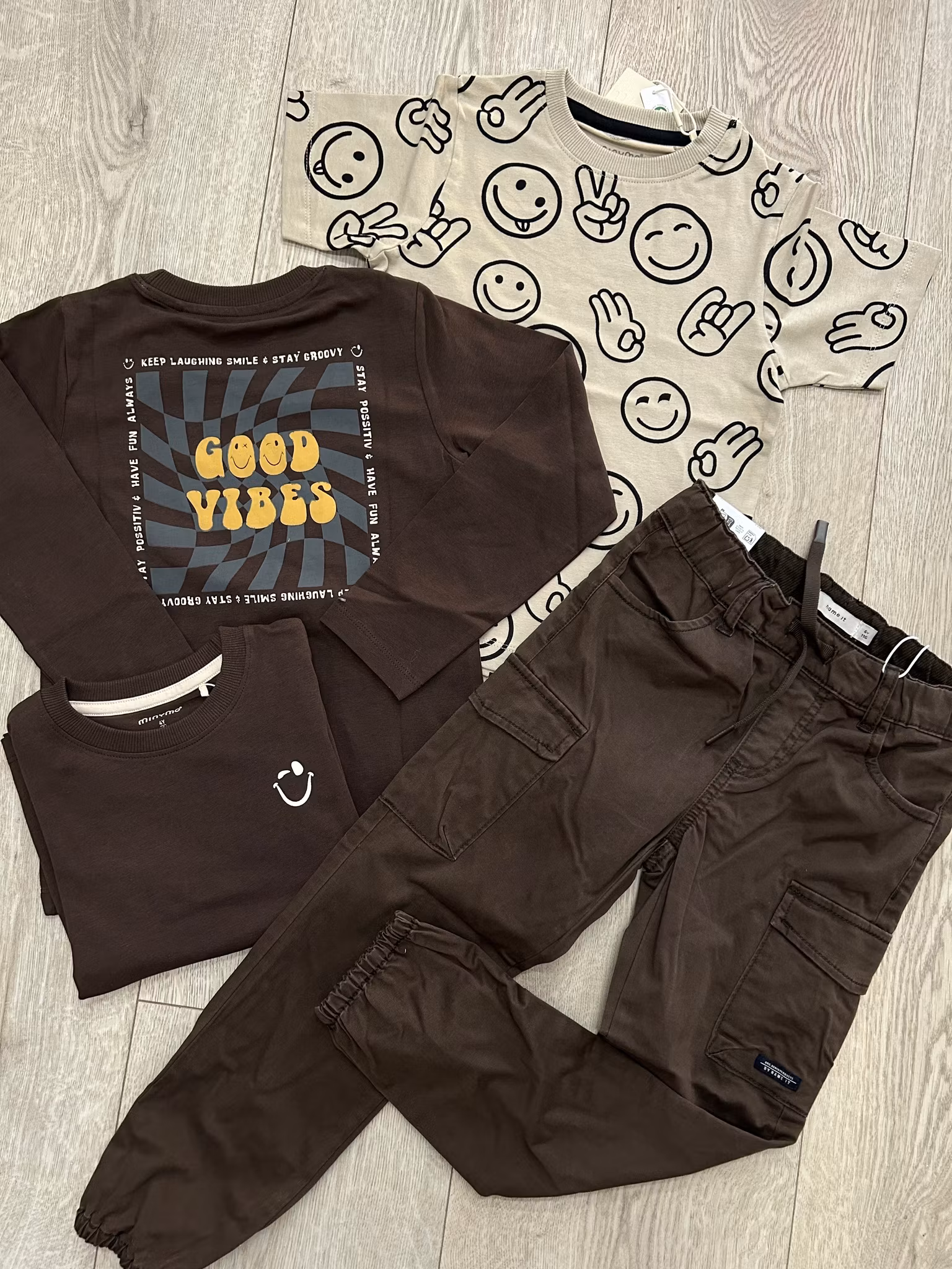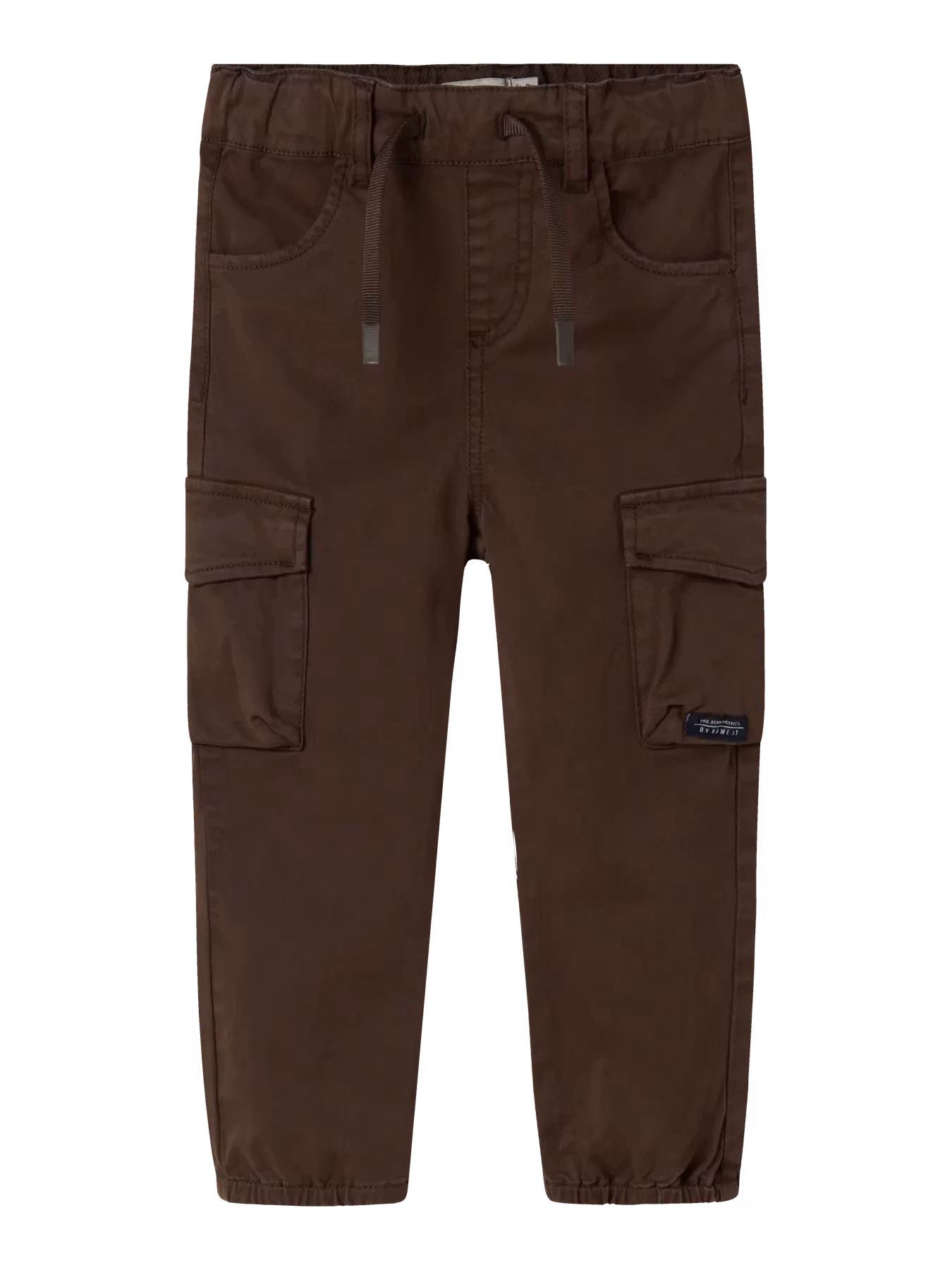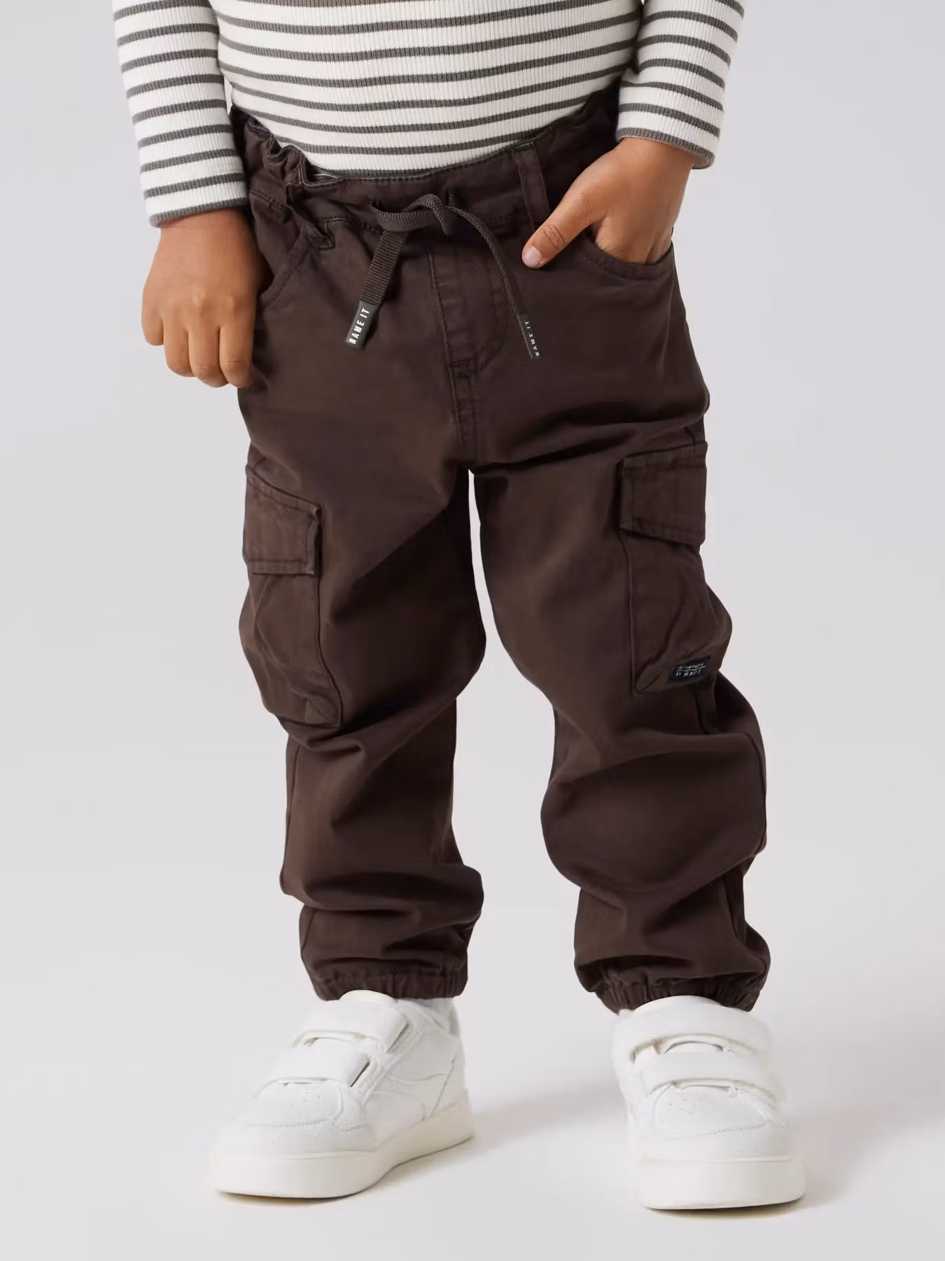 Grymt snygga cargobyxor med fickor på benen, snöre i midjan och mudd i benslu.95% bomull och 5% elastaneMärke: Name it