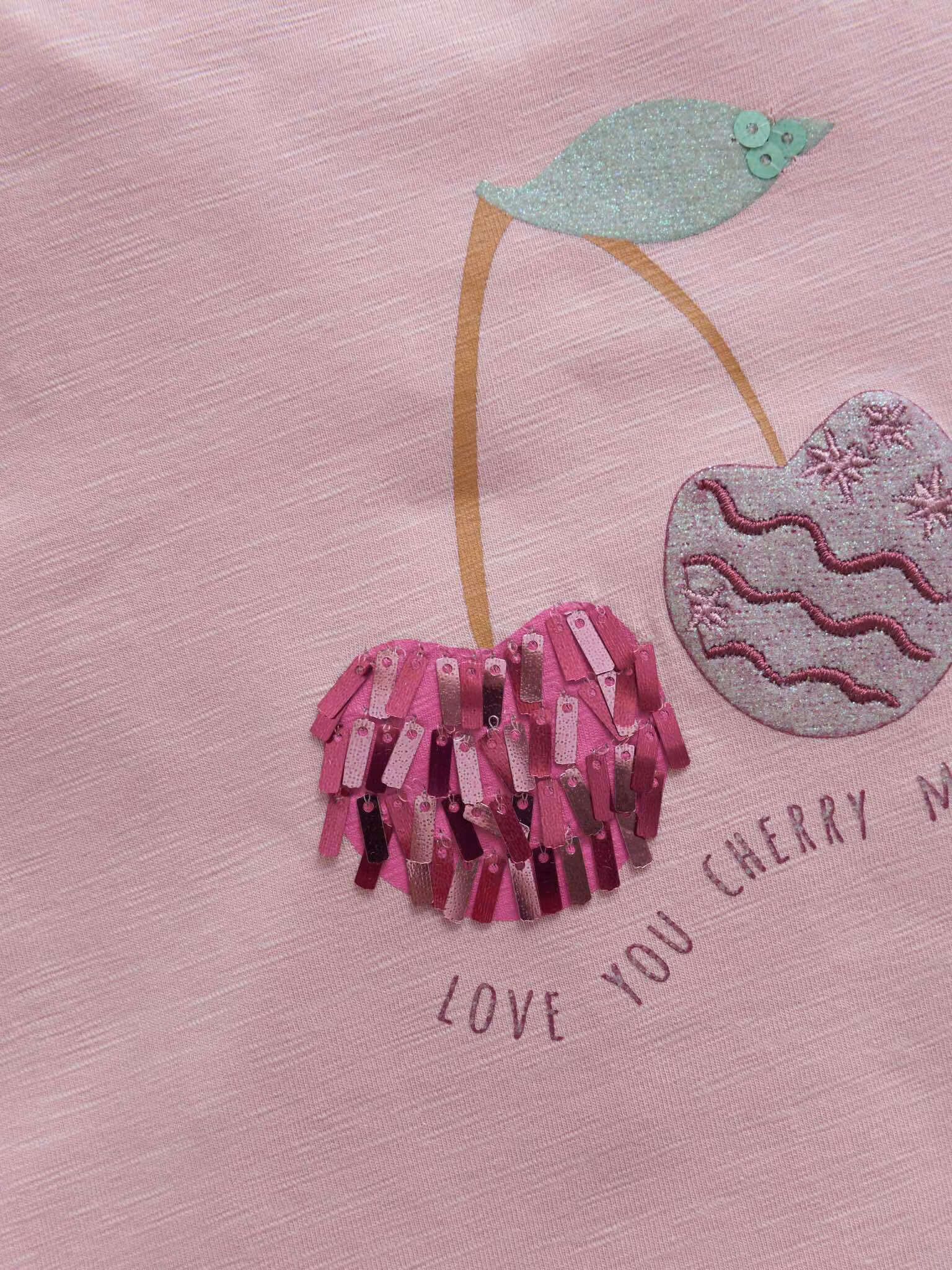 Fin T-shirt med volang på armarna och körsbärsmotiv.