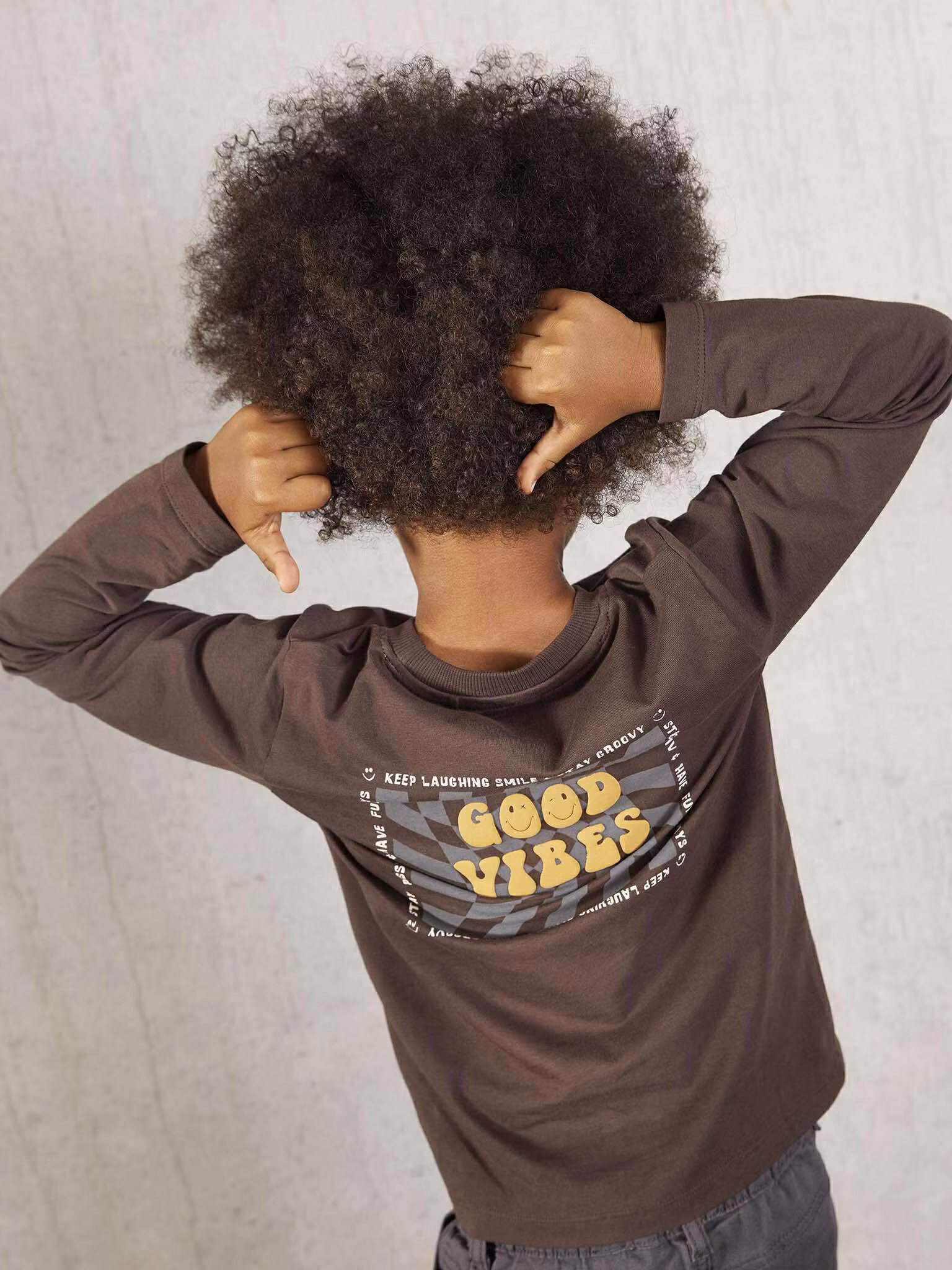 Långärmad T-shirt med litet tryck på bröstet och ett större tryck på ryggen.