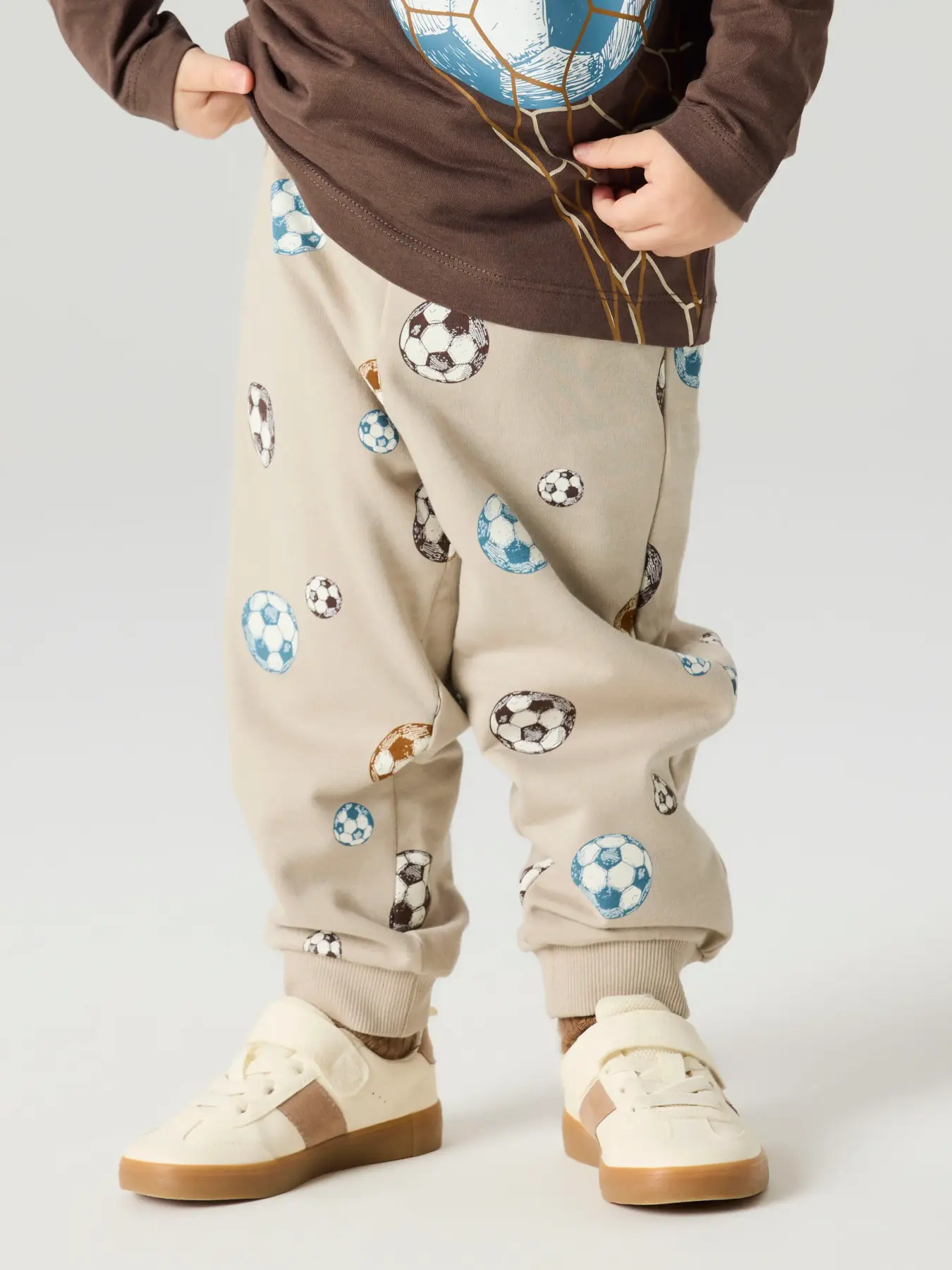 Joggingbyxor med print i form av fotbollar.