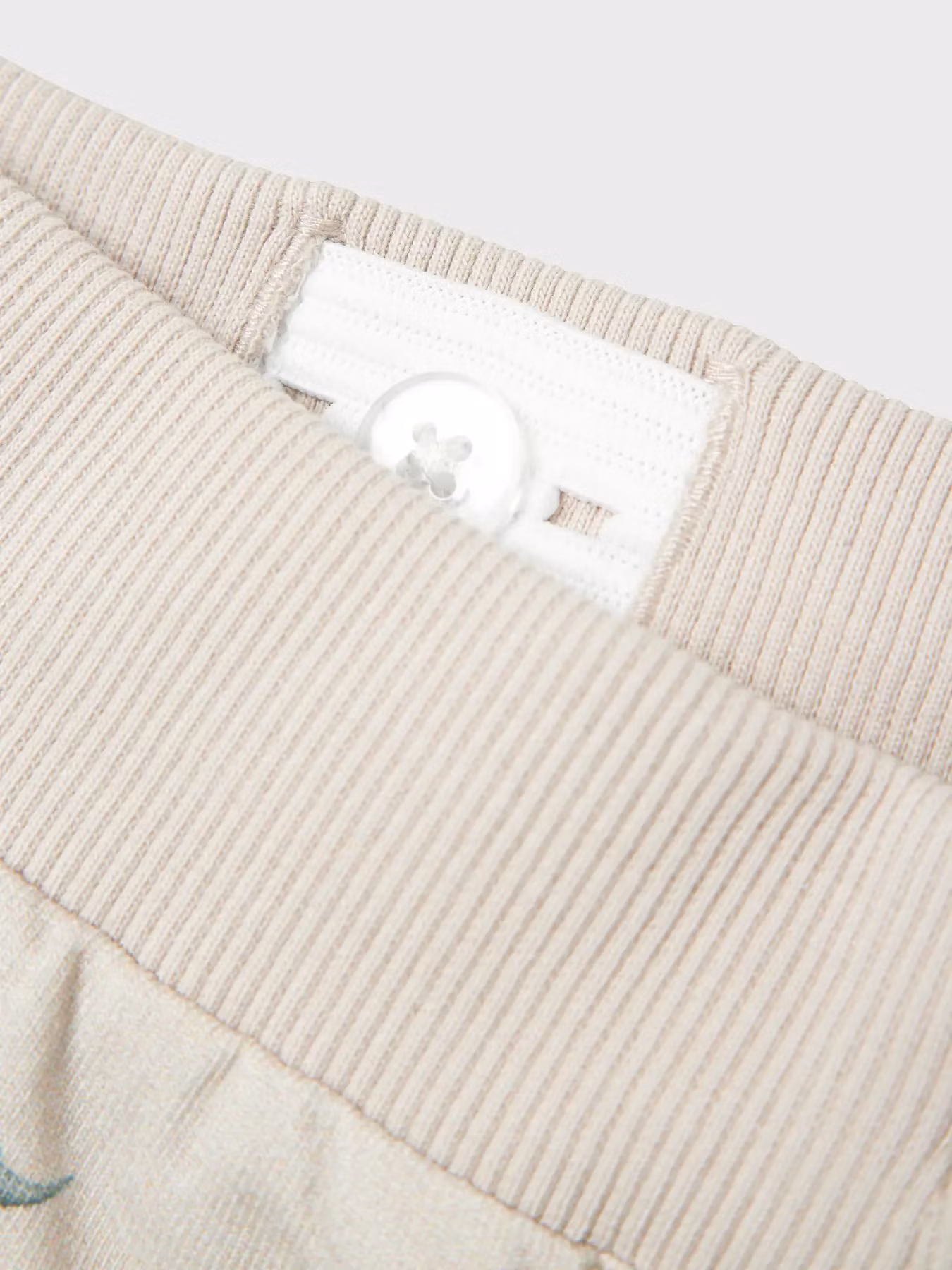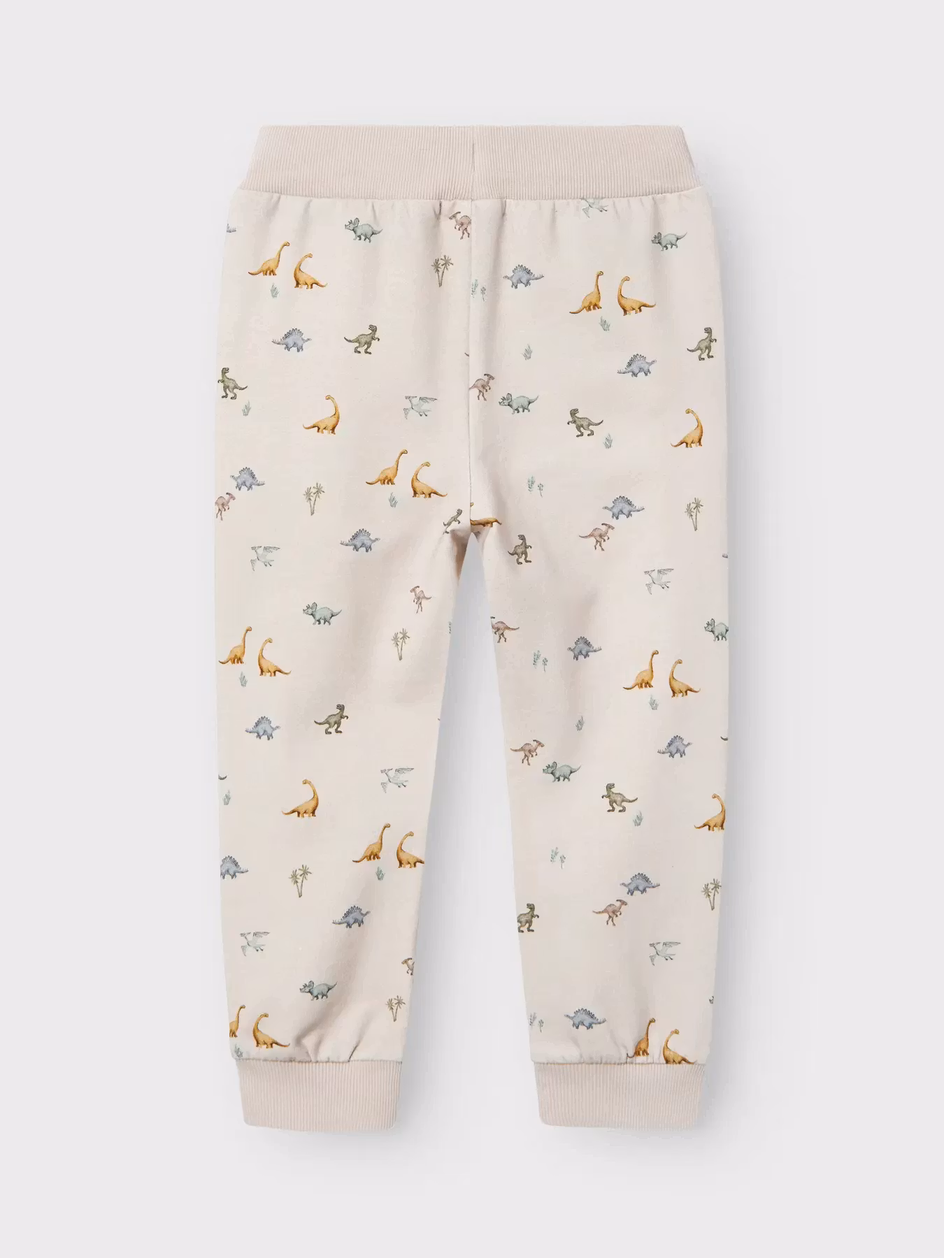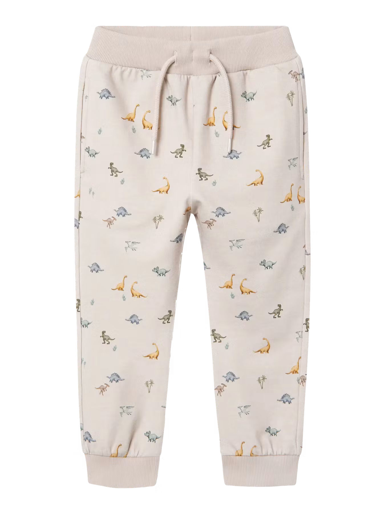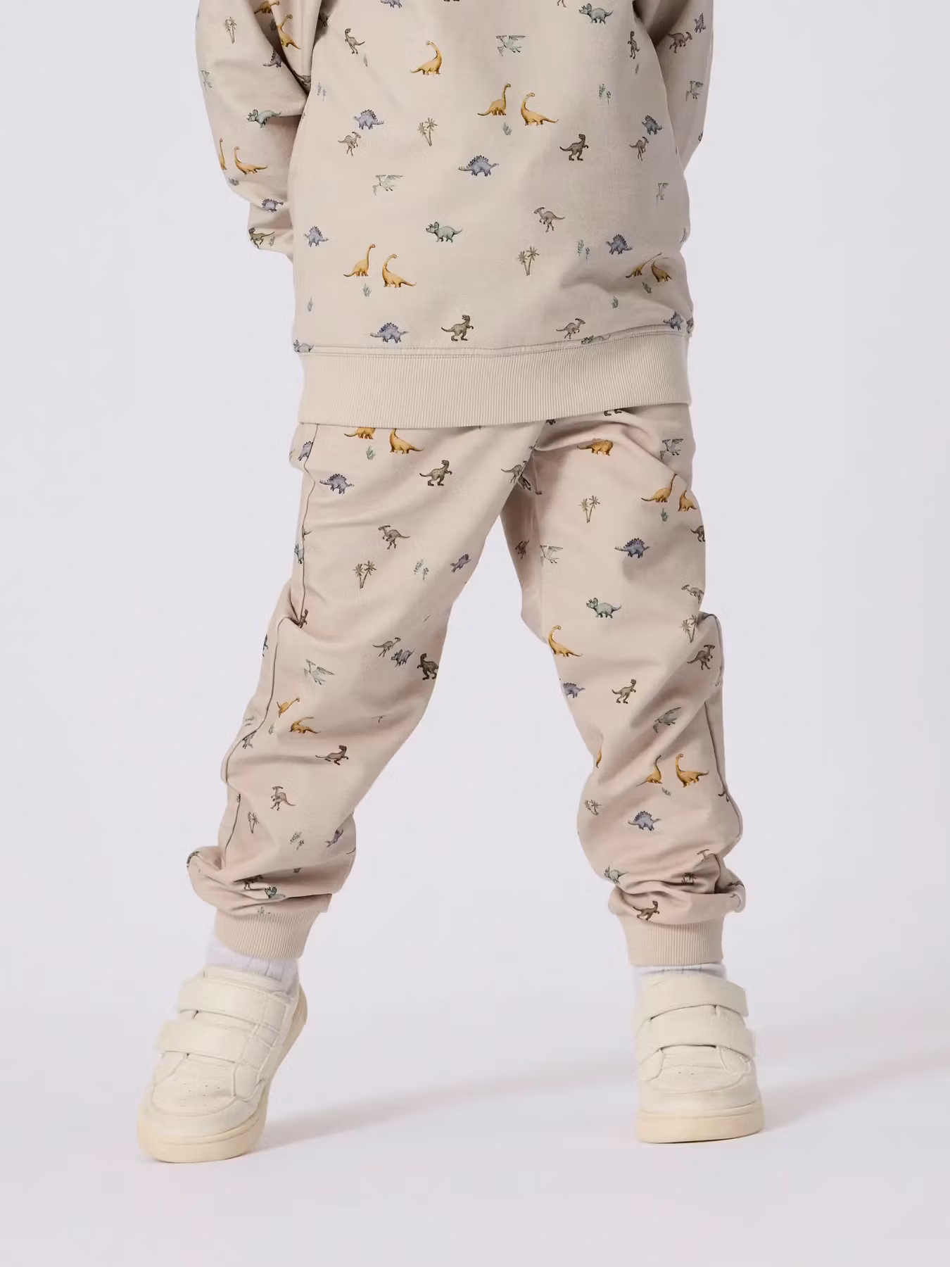 Fin joggingbyxa med små dinosaurier. Mudd i benslut, snöre i midjan och justerbart gummiband på insidan.
