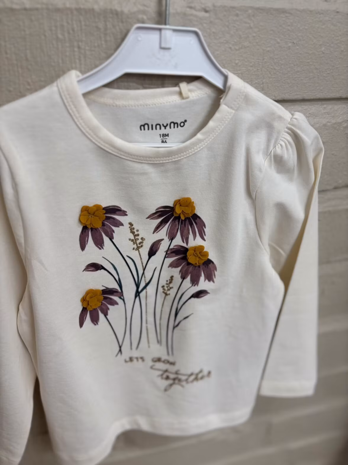 Vacker T-shirt med blommigt motiv.Märke: Minymo95% bomull, 5% elastan