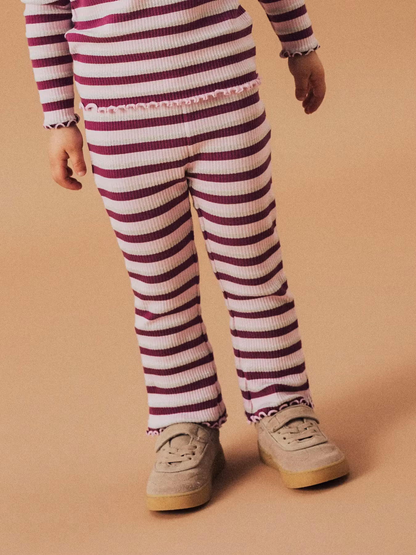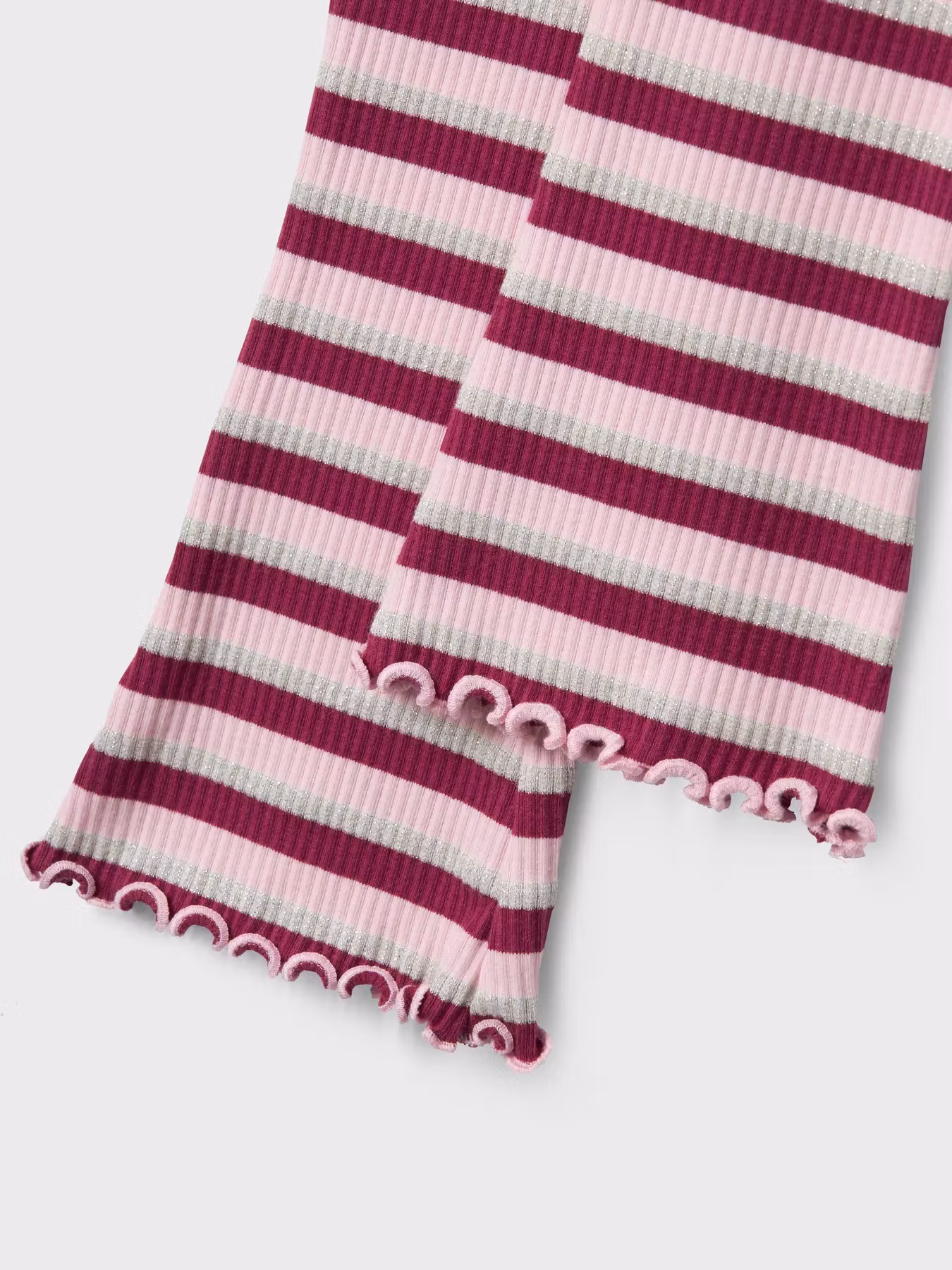 Leggings med ränder och glitter, med fin volangkant nedtill
