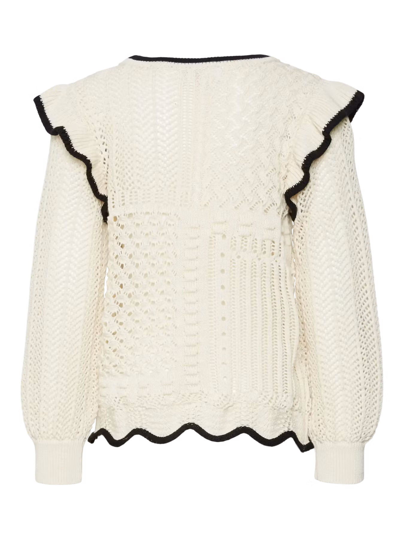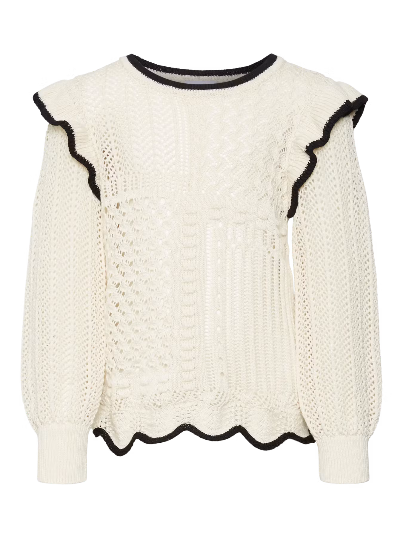Stickad tröja från Vero Moda girl, med otroligt många fina detaljer.Beige/creme med svart.Märke: Vero moda girl