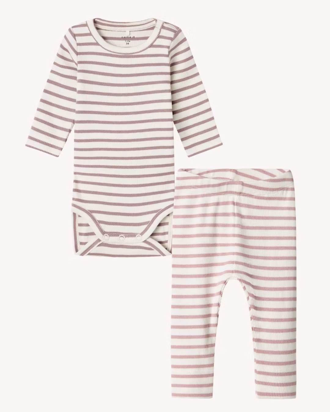 Storsäljare från name it, Otroligt mjuka och sköna i material.Leggings & Body - Randiga i rosa & vitt, ribbat(Bilden på leggingsen är lite missvisande,