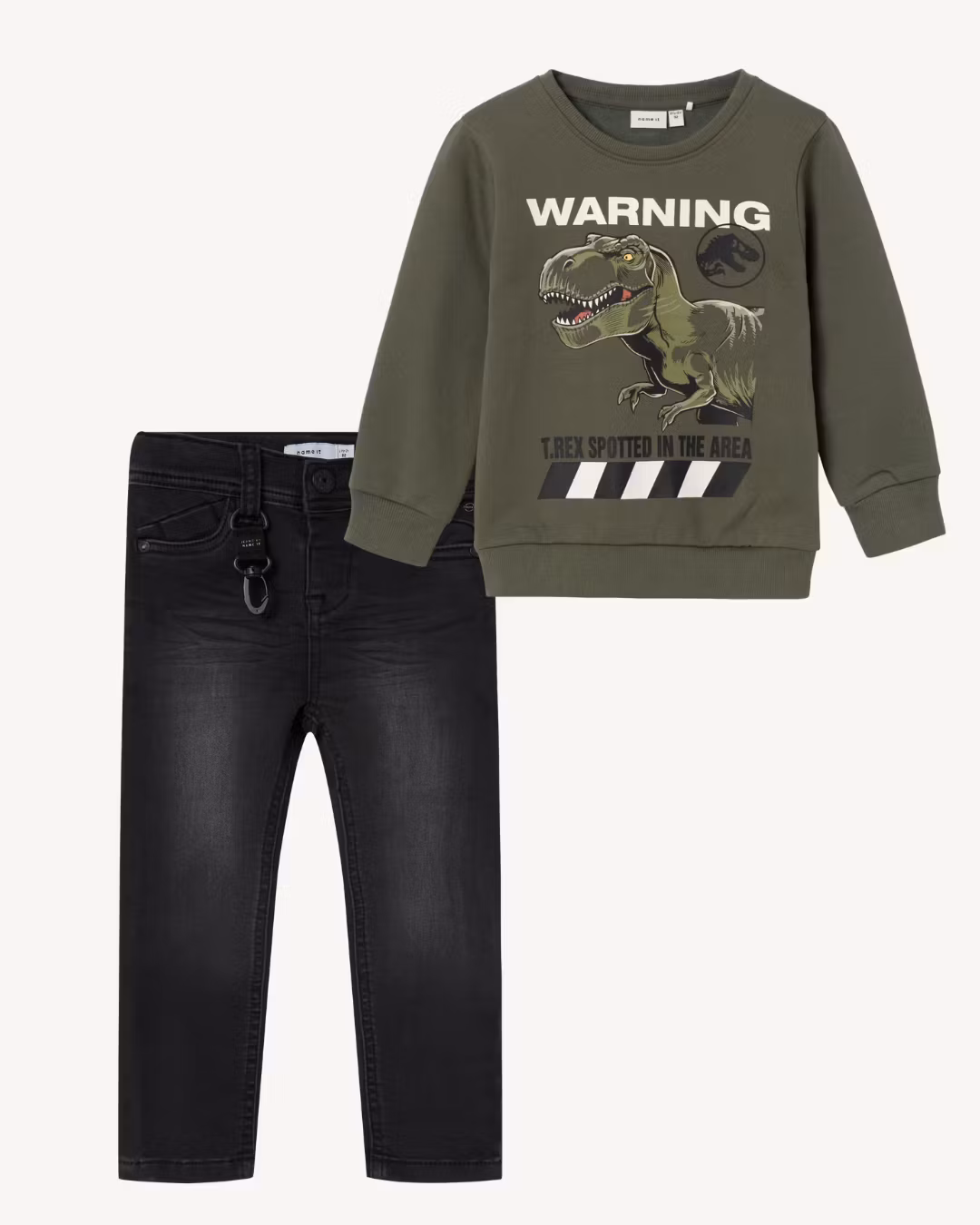 Mjukaste jeansen - fina detaljer och väldigt lekvänliga då där är stretch iCollege tröja - med dinosaurie