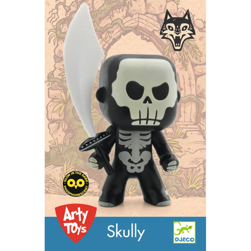 Från +4 år. Den spöklika krigaren Skully är redo för nya äventyr. Figuren är gjord i plast och både skelettet och svärdet lyser i mörkret (glow in the dark). Hu