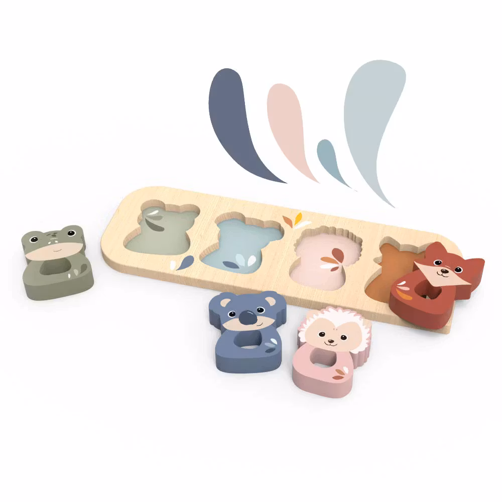 Ljusa, flerfärgade bitar är perfekt dimensionerade för små händer, vilket uppmuntrar självständig lek och kognitiv utveckling. Oavsett om ditt barn matchar former eller identifierar djur, väcker varje pusselbit nyfikenhet och lärande. Innehåller 4 djurformsklossar.
