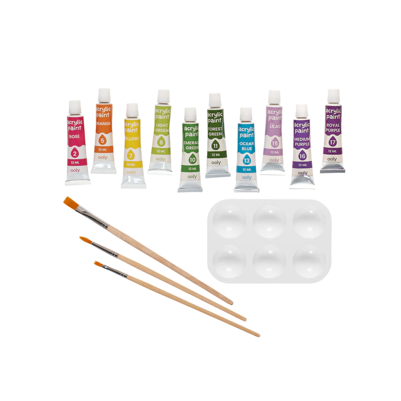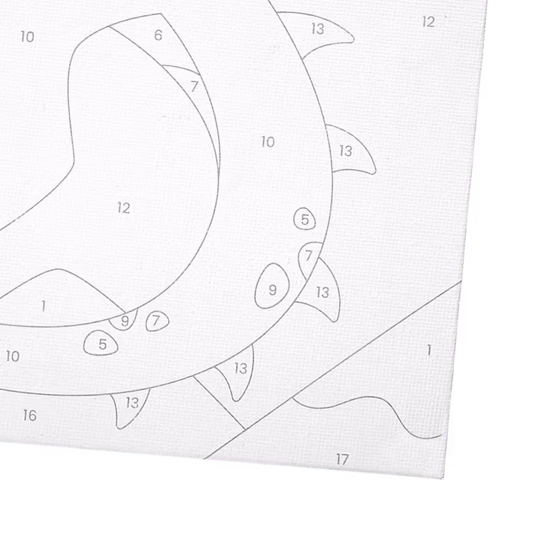 Börja med den generösa duken (11,8 x 11,8 tum), med det numrerade Fantastiska Drak-omrisset som har stora ytor för målning. Matcha siffrorna med de 10 medföljan