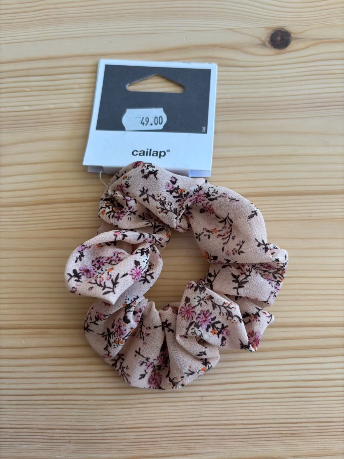 Vacker scrunchie med blommor på.Piffar till frisyren på ett kick. Den är elastisk och passar hästsvansar, hairbuns, flätor mm.