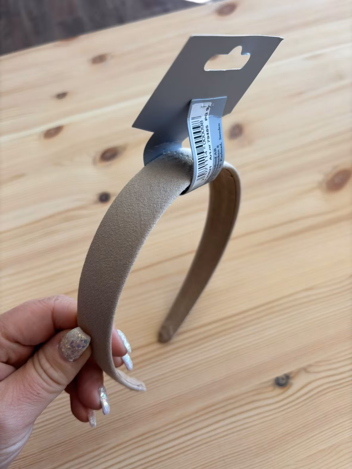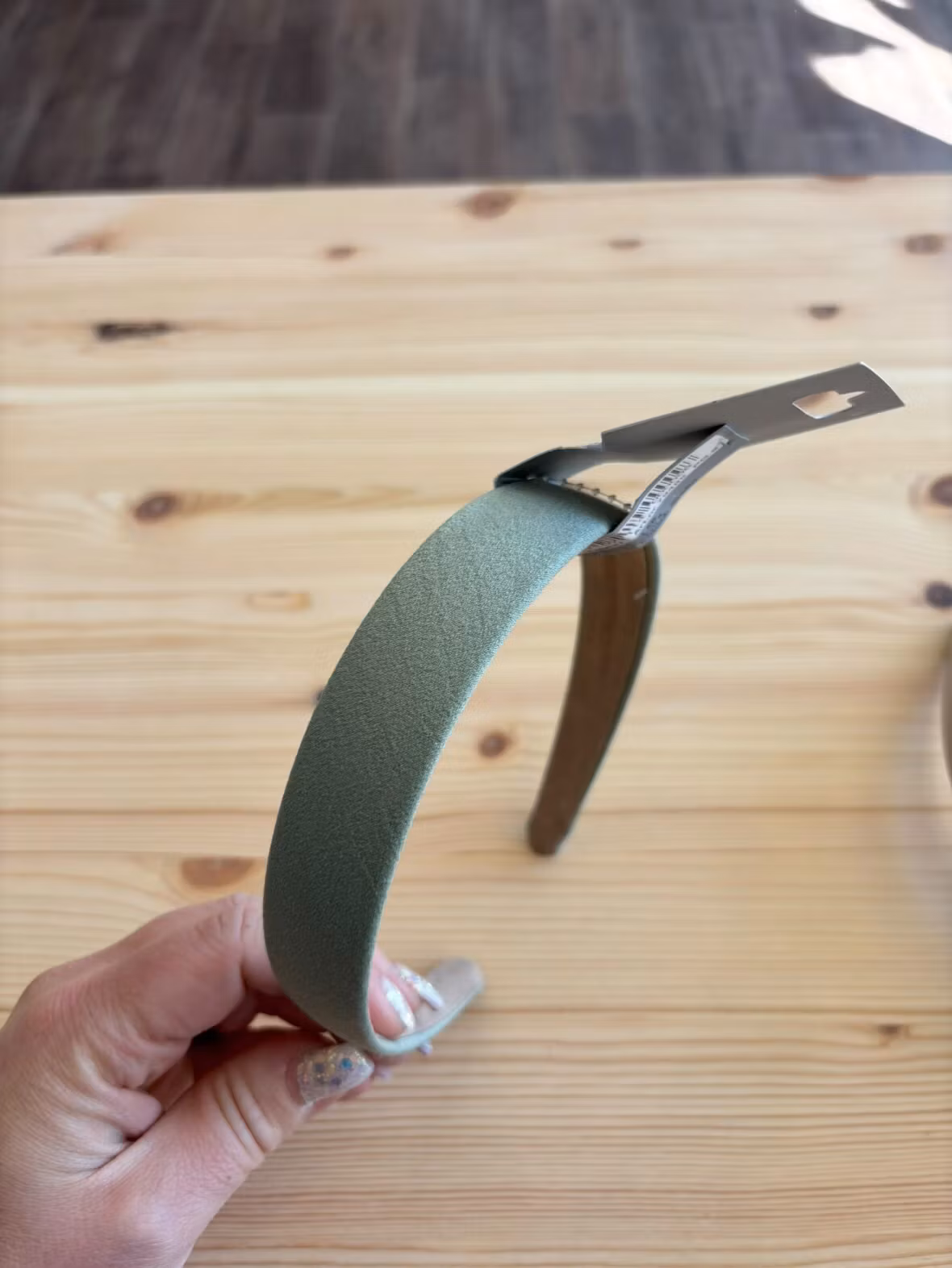 Enfärgat slätt diadem i grönt eller ljusbeige.