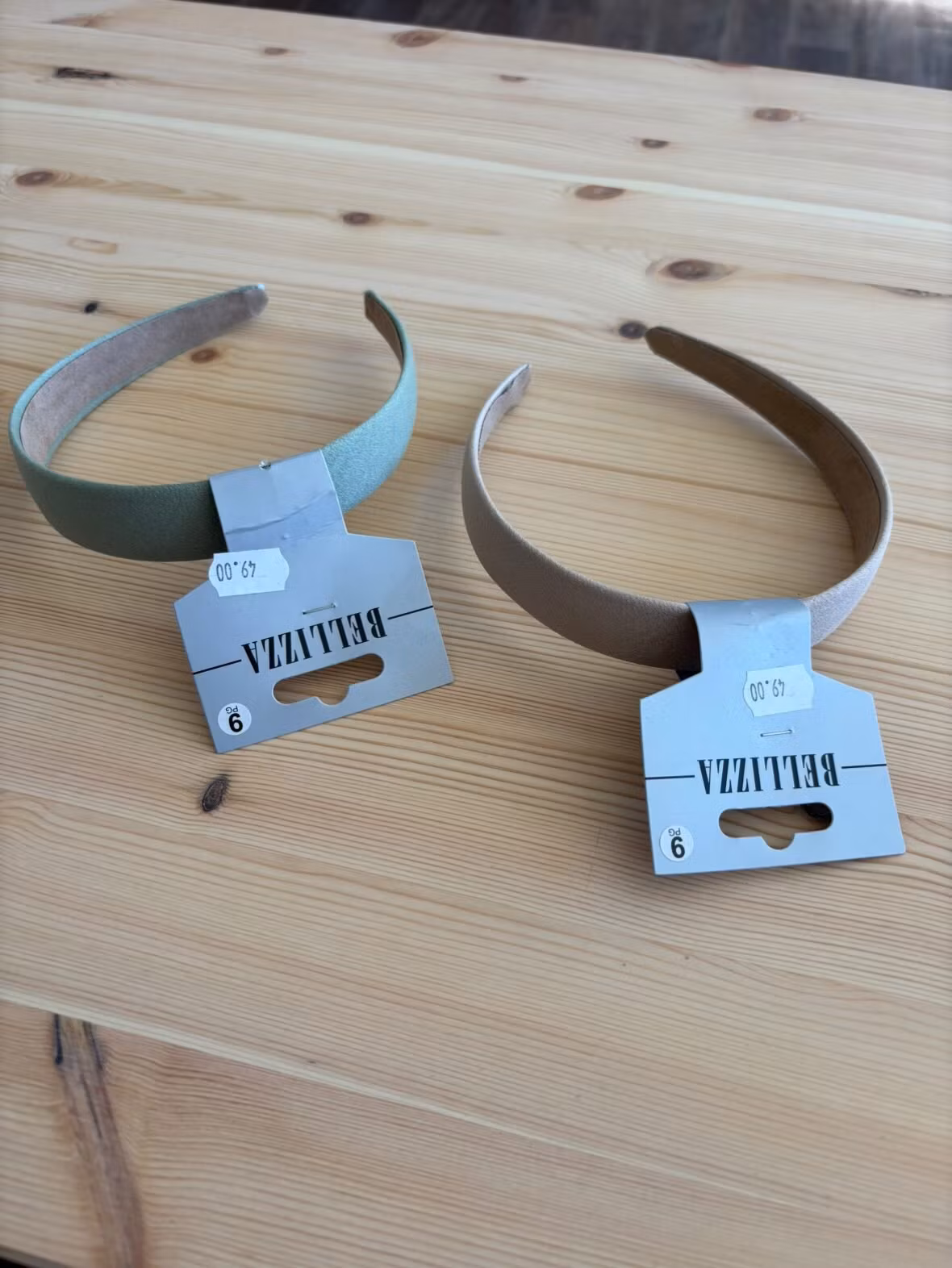 Enfärgat slätt diadem i grönt eller ljusbeige.Piffar till frisyren på ett kick.