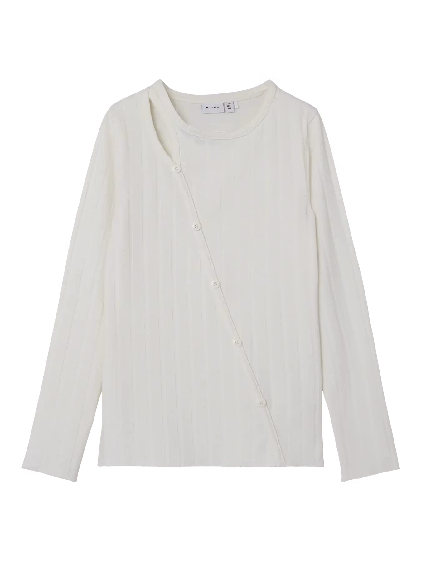 Långärmad tshirt med många detaljer, både med skurning uppe vid halsen samt knappar diagonalt över magen.Märke: Name it