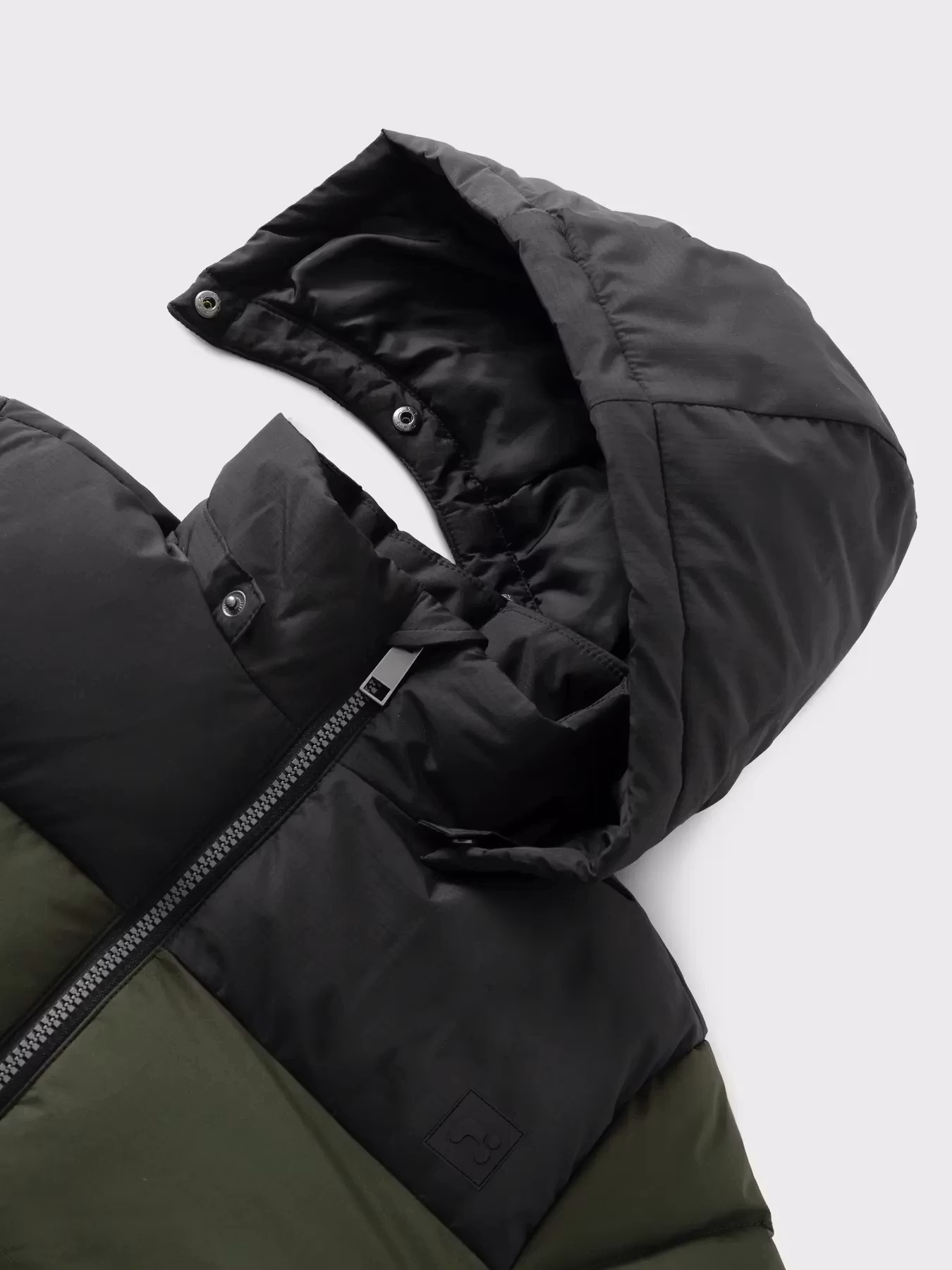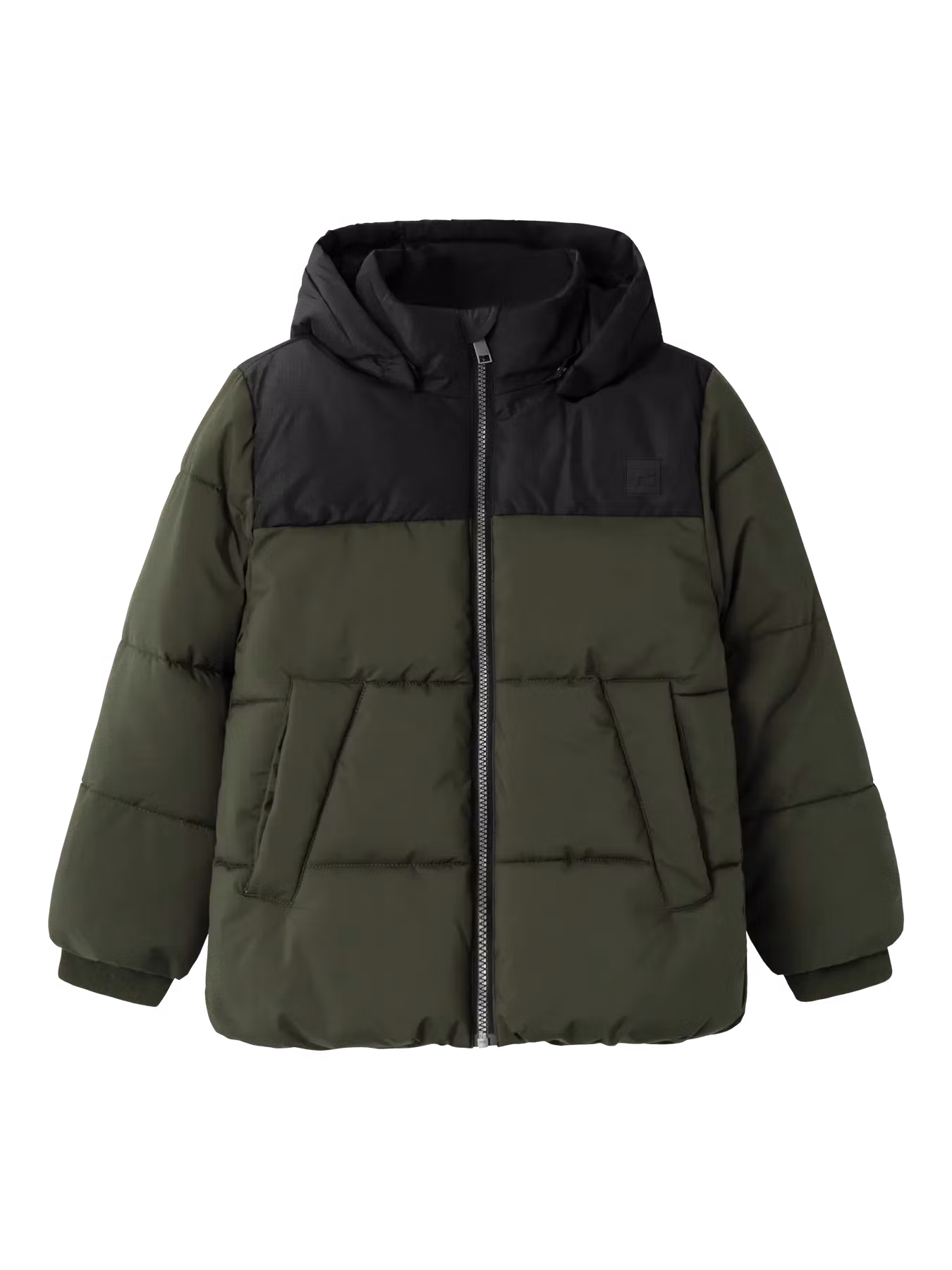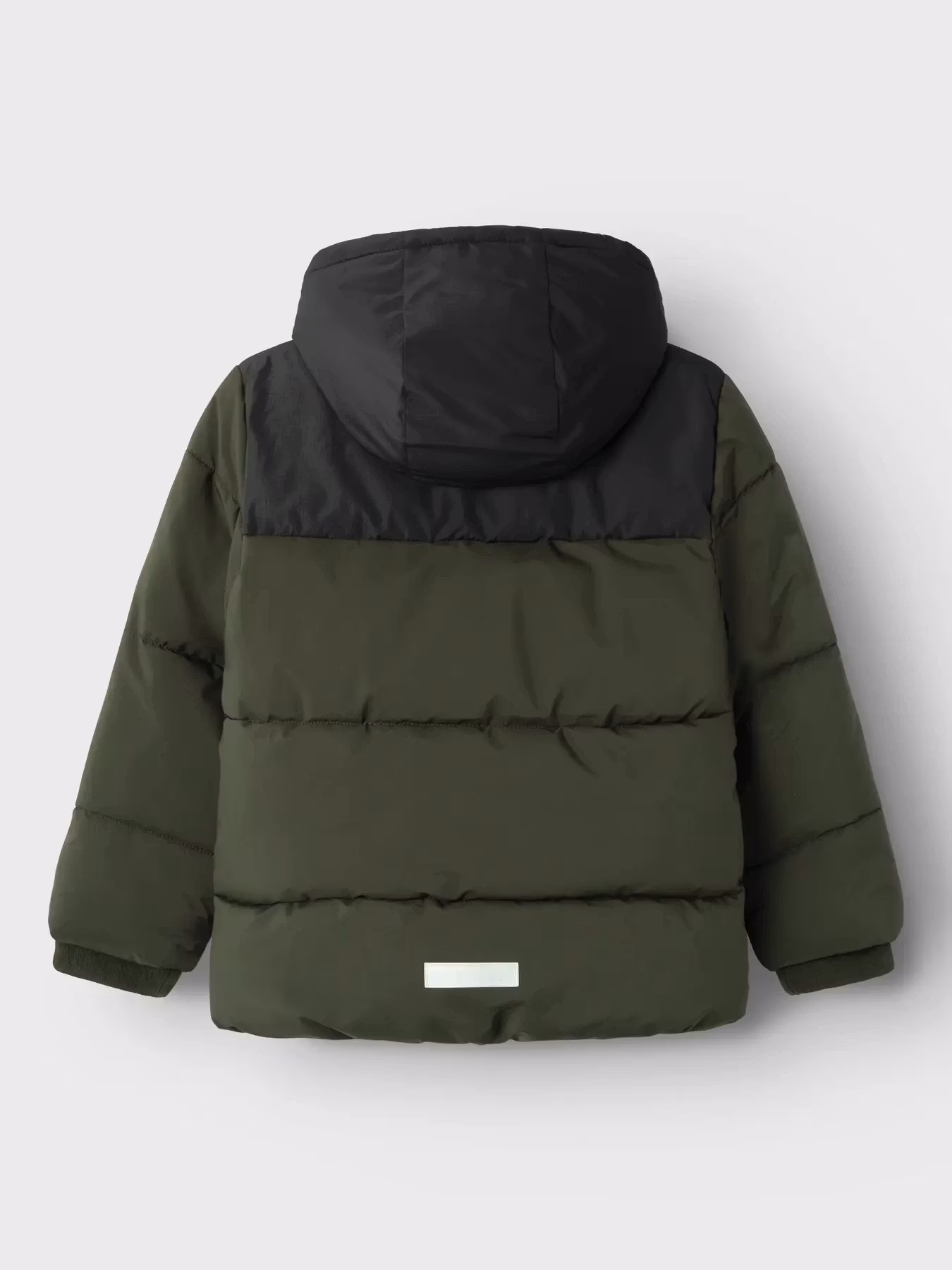 Puffer vinterjacka, med avtagbar huva. Reflexdetalj baktill, muddar i armslutet.Grön/svartMärke: Name it