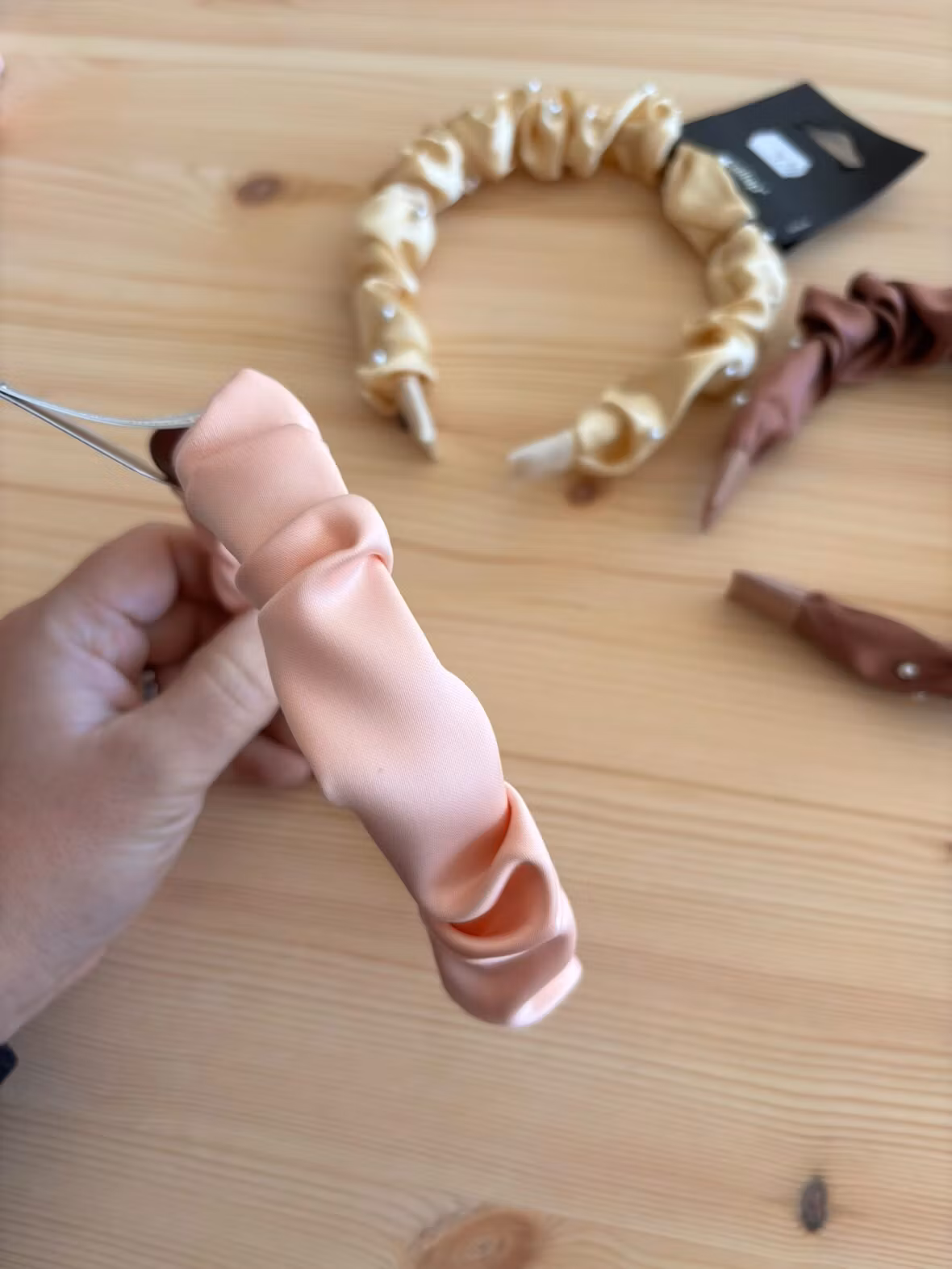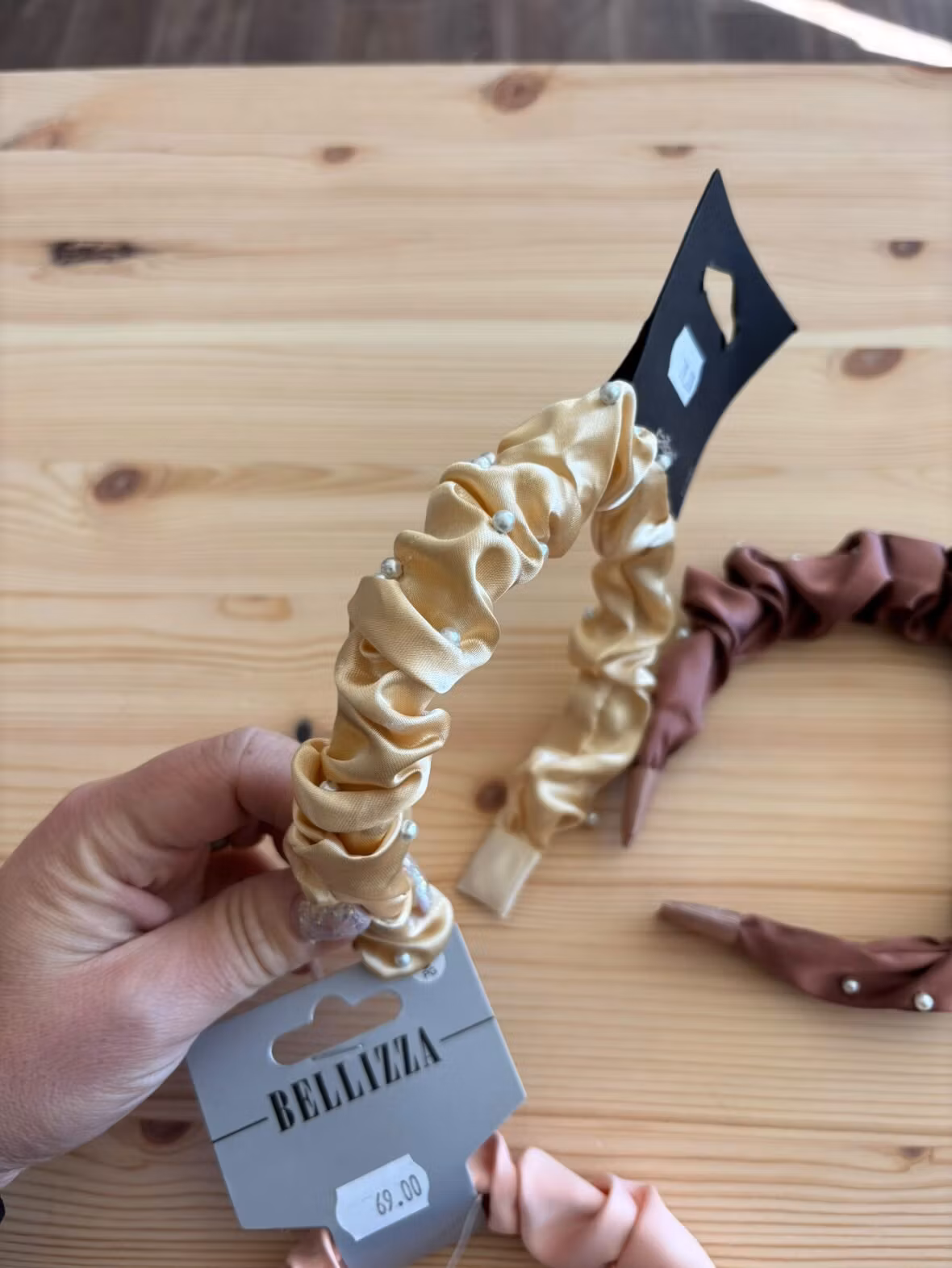 Mycket fint diadem som är något smalare.Rosa, gul med pärlor eller brun med pärlor.
