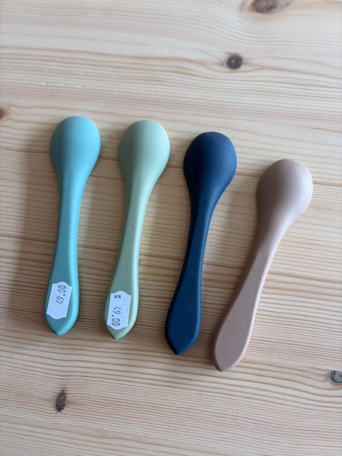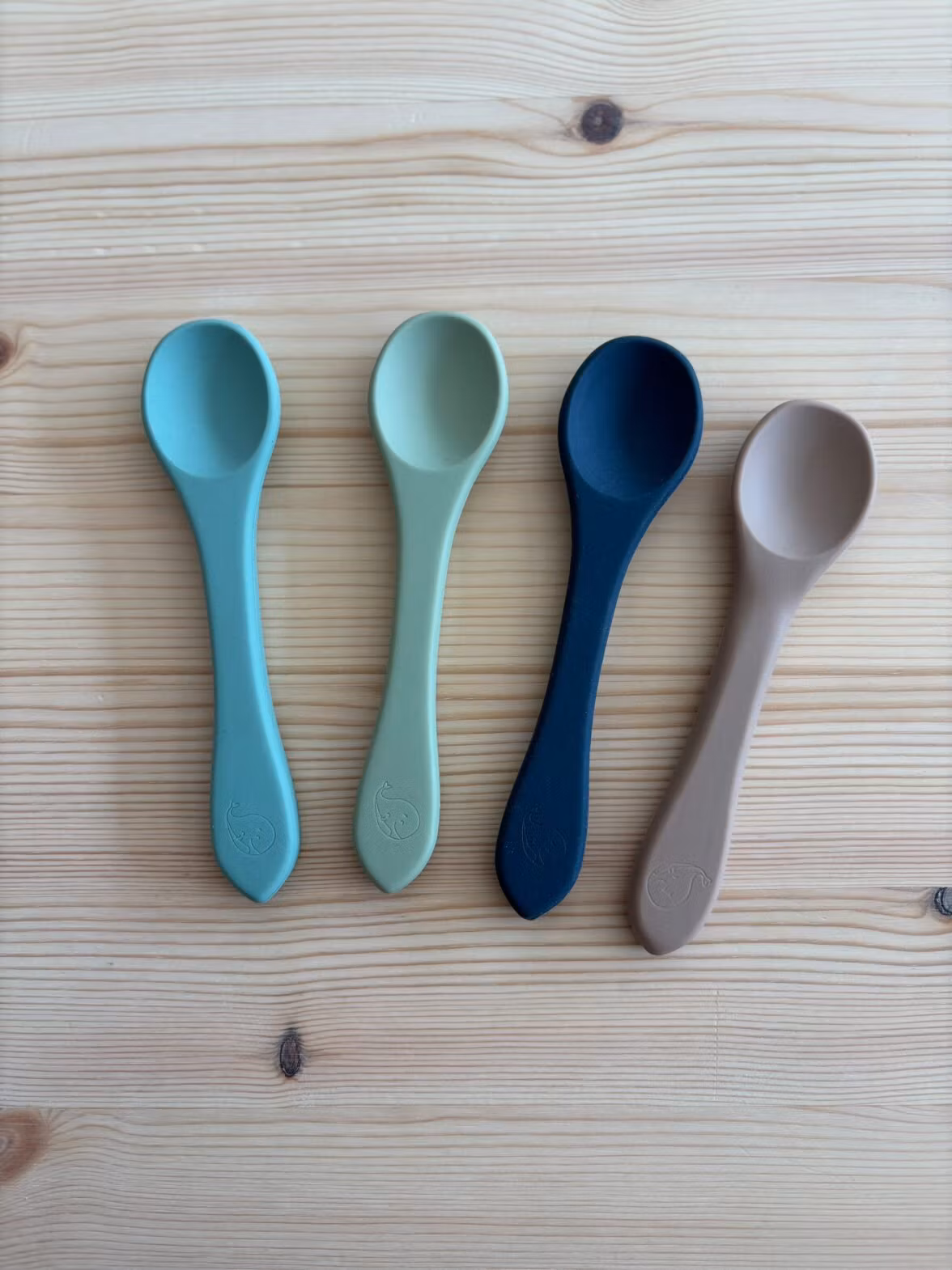 Sked Henrik från Whally, gjord av silikon. Enkel sked att använda till barnet som ska lära sig själv att äta. Snygga färger.