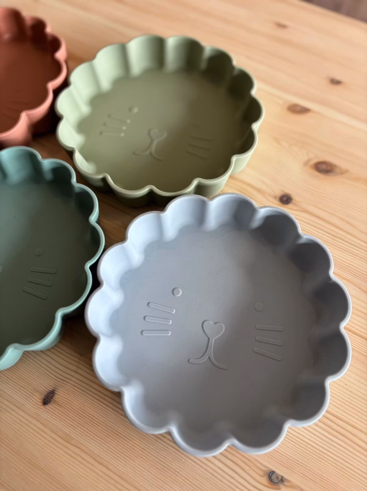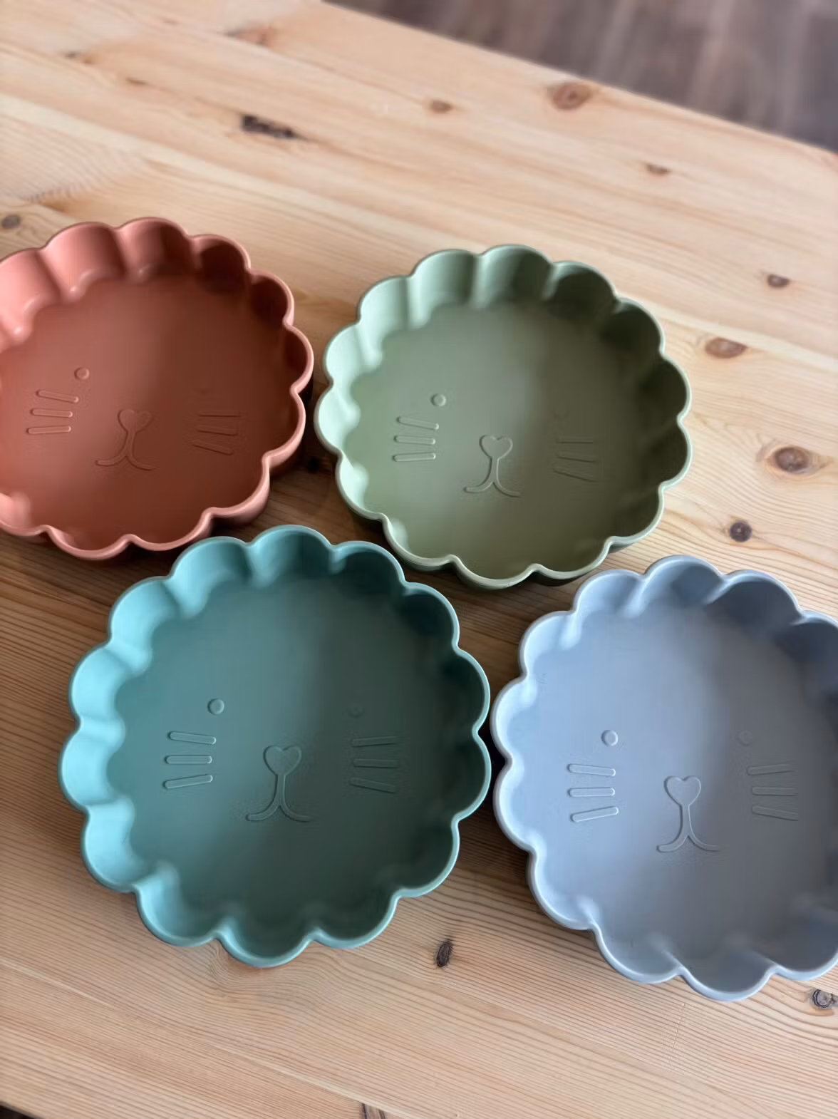 Väldigt söt tallrik från Whally, som är gjord av 100% silikon. Har En sugpropp undertill, vilket förhindrar tallriken att trilla ner på golvet när barnet sitter