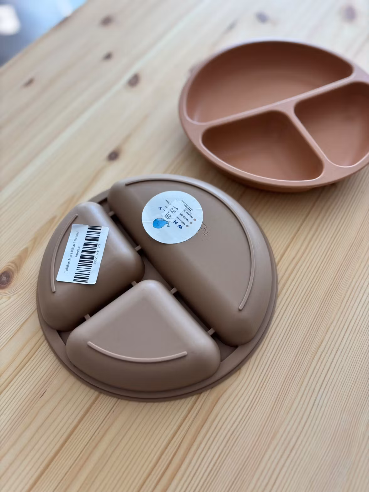 Fin tallrik från Whally med 3 olika fack. Perfekt för den som vill dela upp maten på tallriken åt sitt lilla barn. Gjord på 100% silikon.