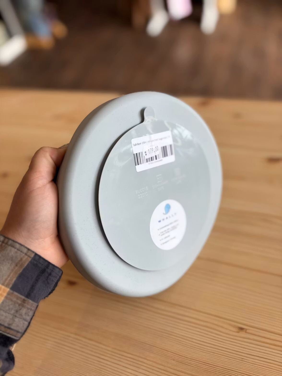 Enkel och fin tallrik från Whally. Gjord av 100% silikon och har tre olika fack, vilket är perfekt om man vill dela upp maten på tallriken. Produkten har också