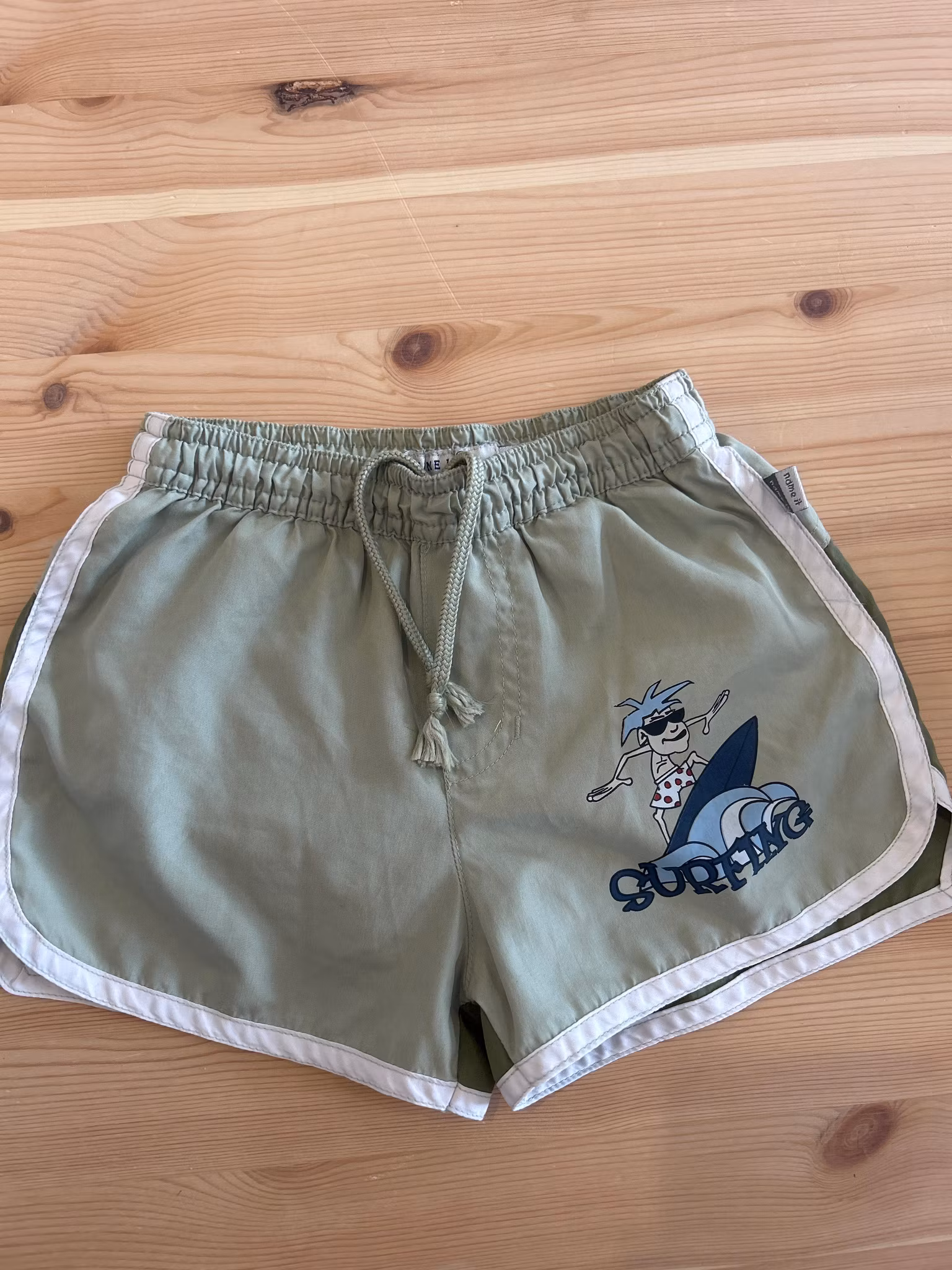 Badshorts med tryck på ena benet,Ljusgrön fram & mörkare grön bak Strl 80Märke: name it