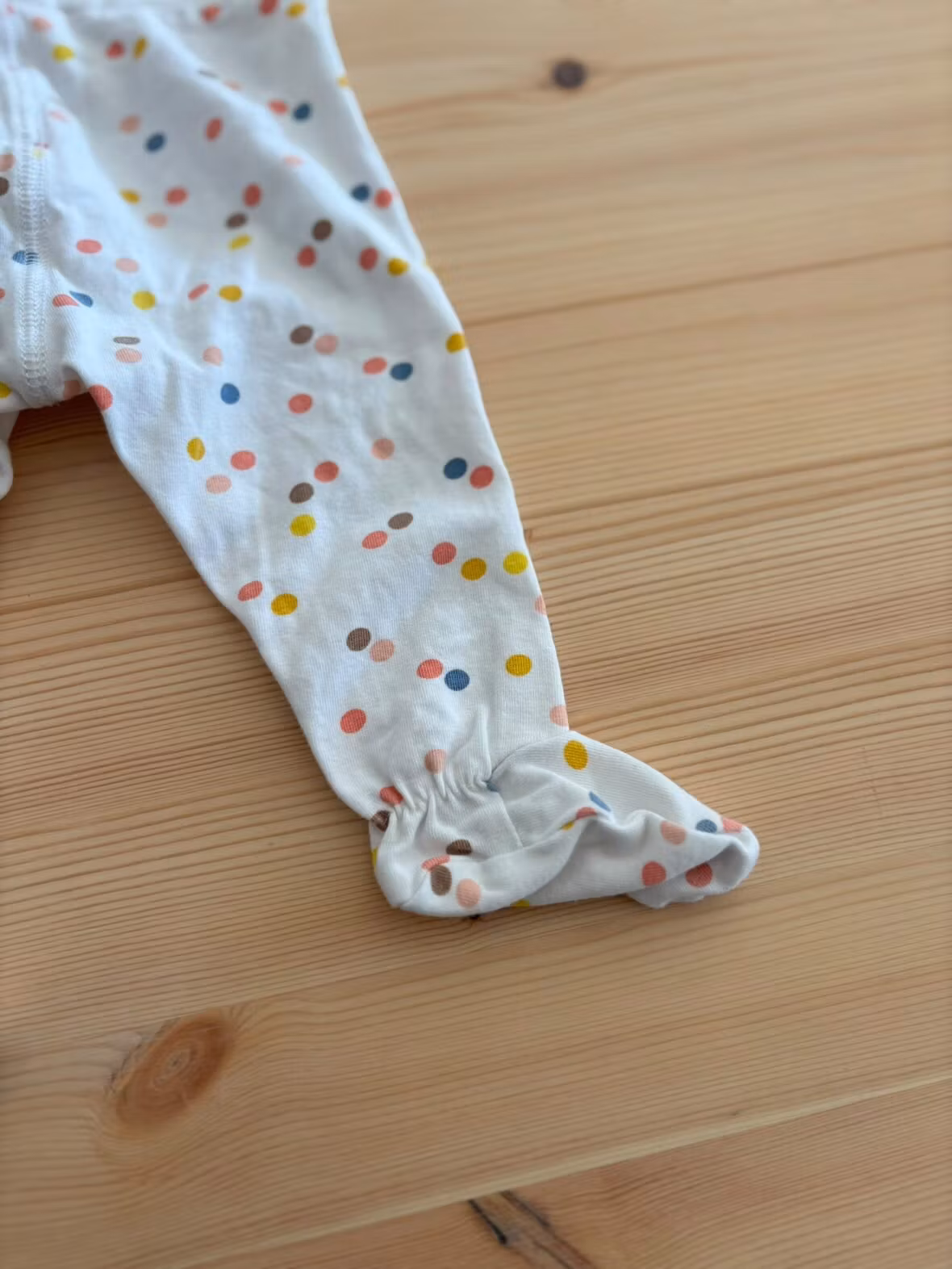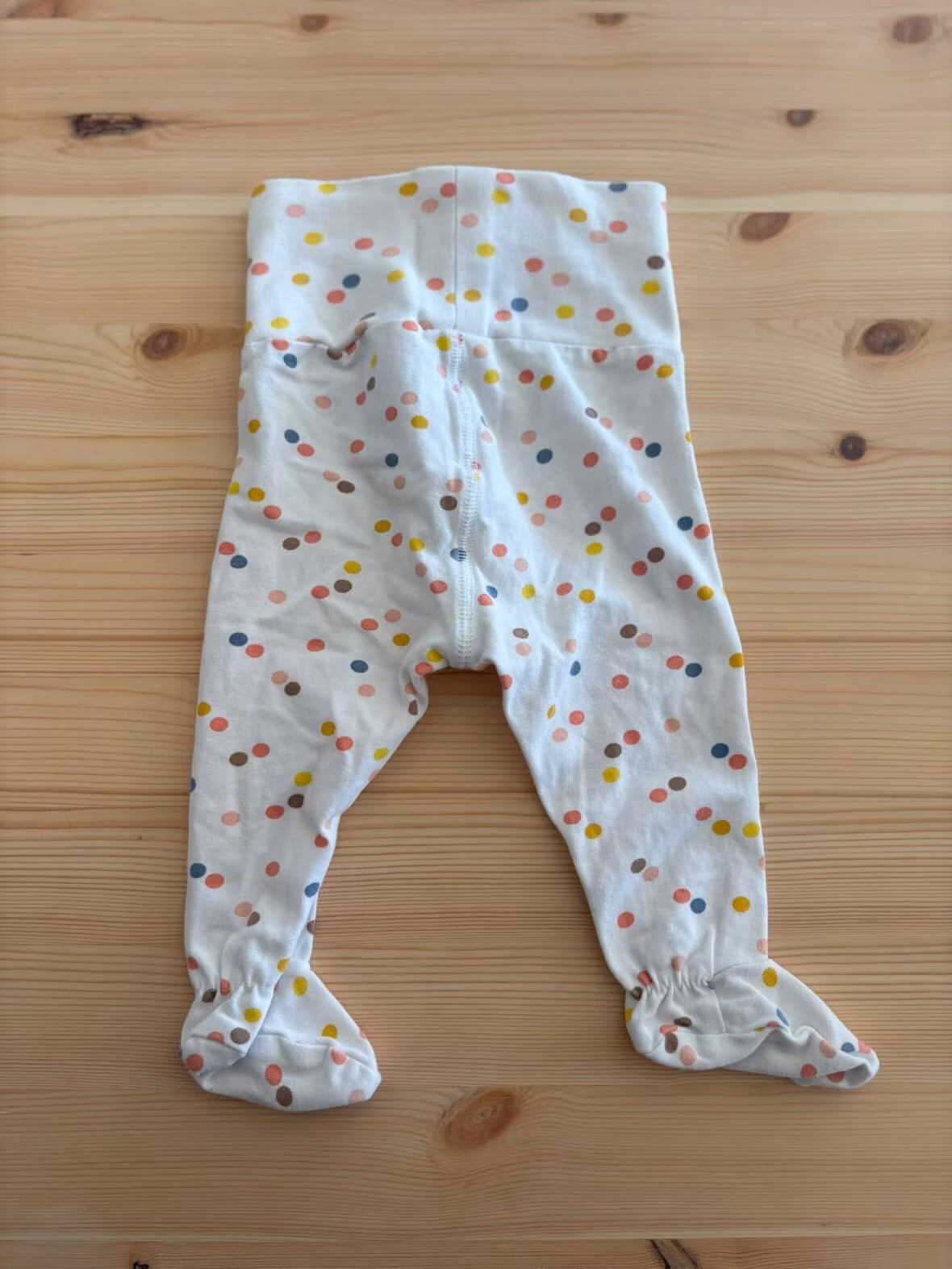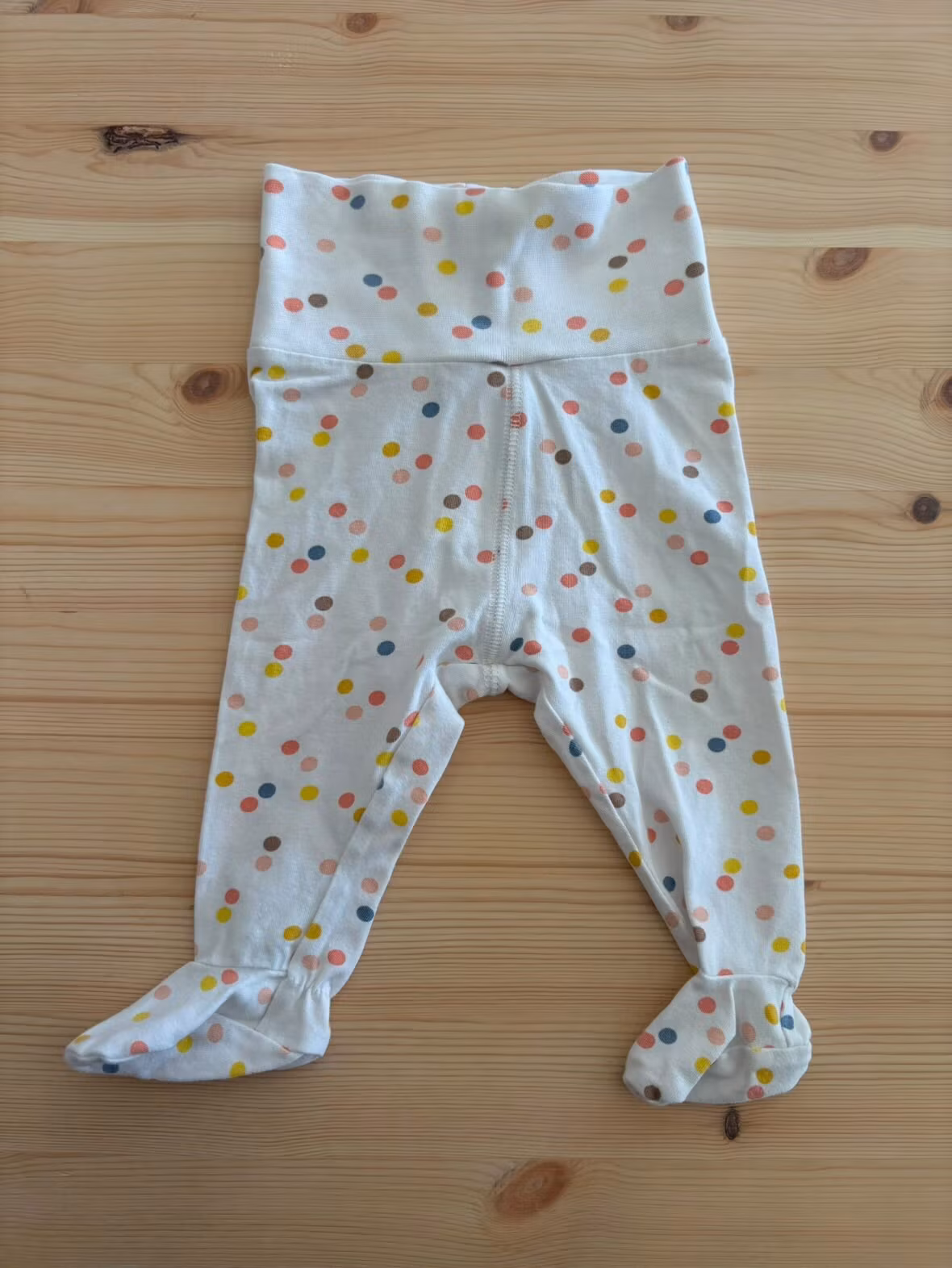 Mjuk och skön byxa med inbyggd strumpa.Vit bas med prickar i olika färger, från H&M.Prisvärt och hållbart alternativ.