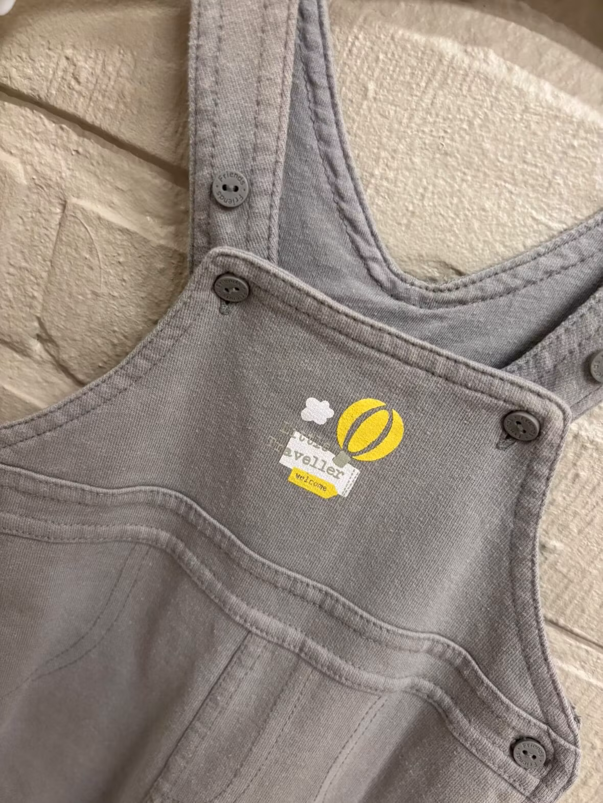 I märket lupilu och har ett litet tryck på bringan ”little traveller welcome”