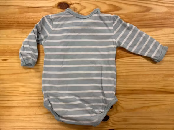 Randig body i vitt och ljusblått.Storlek 56Märke: friends