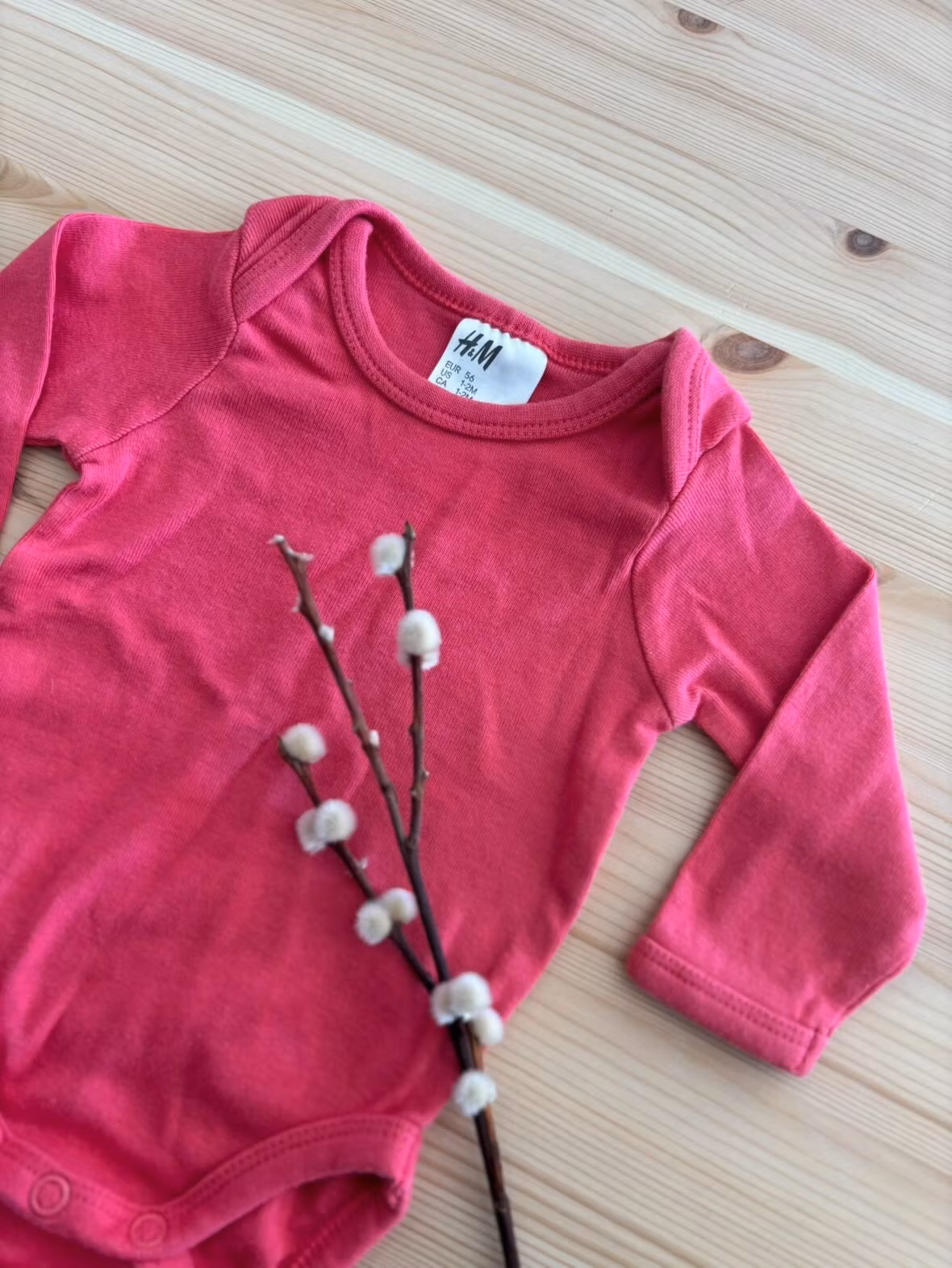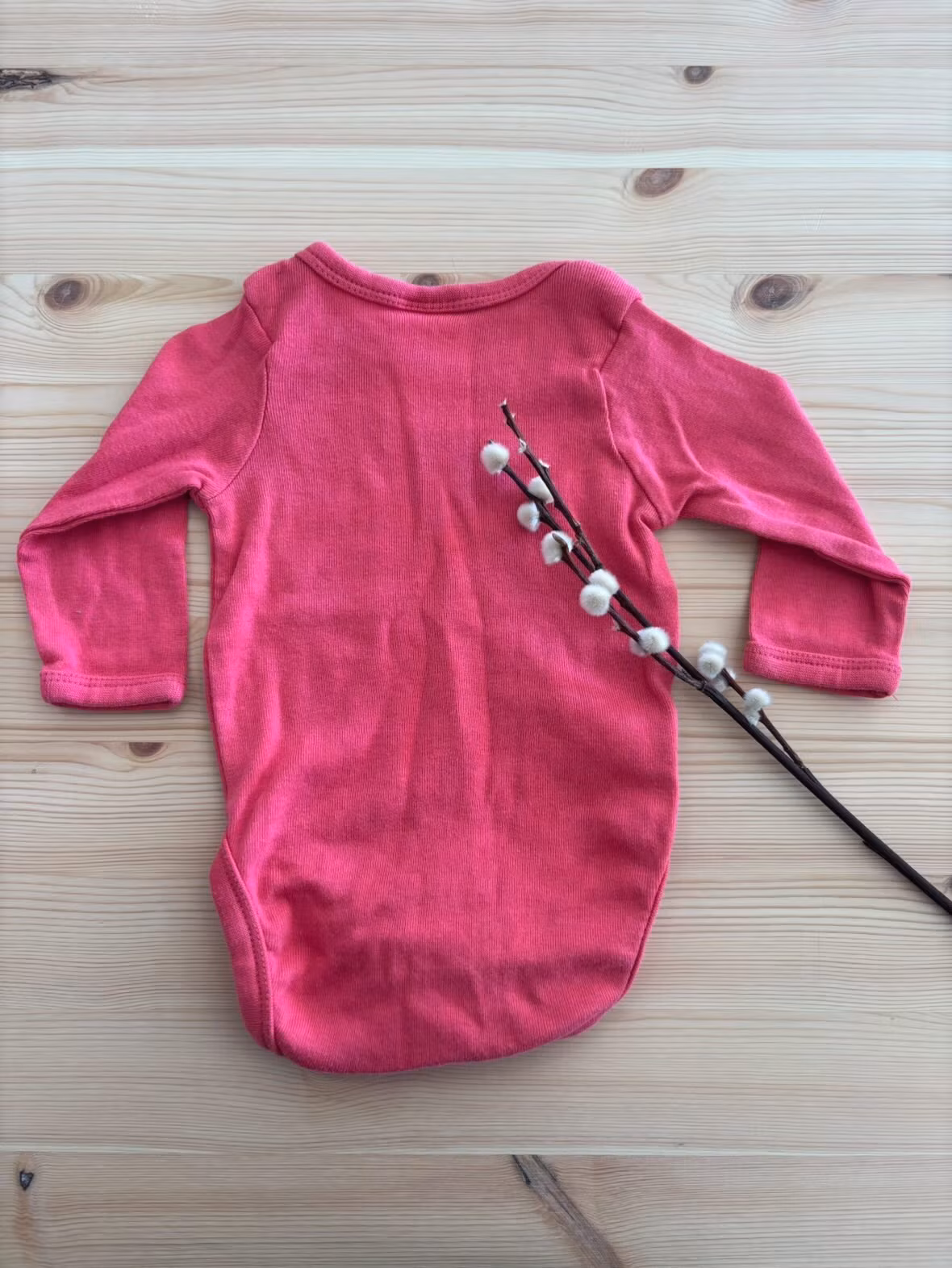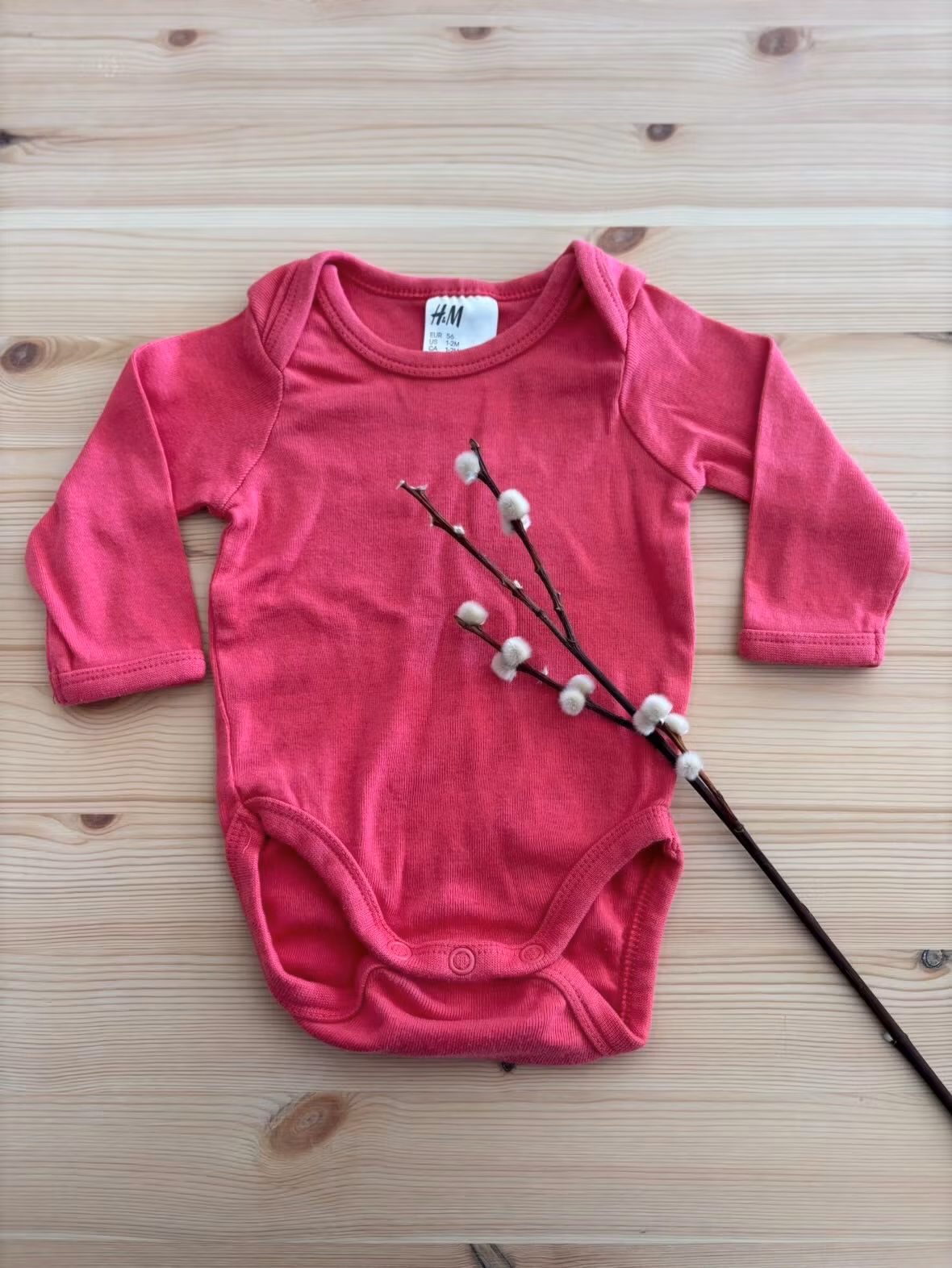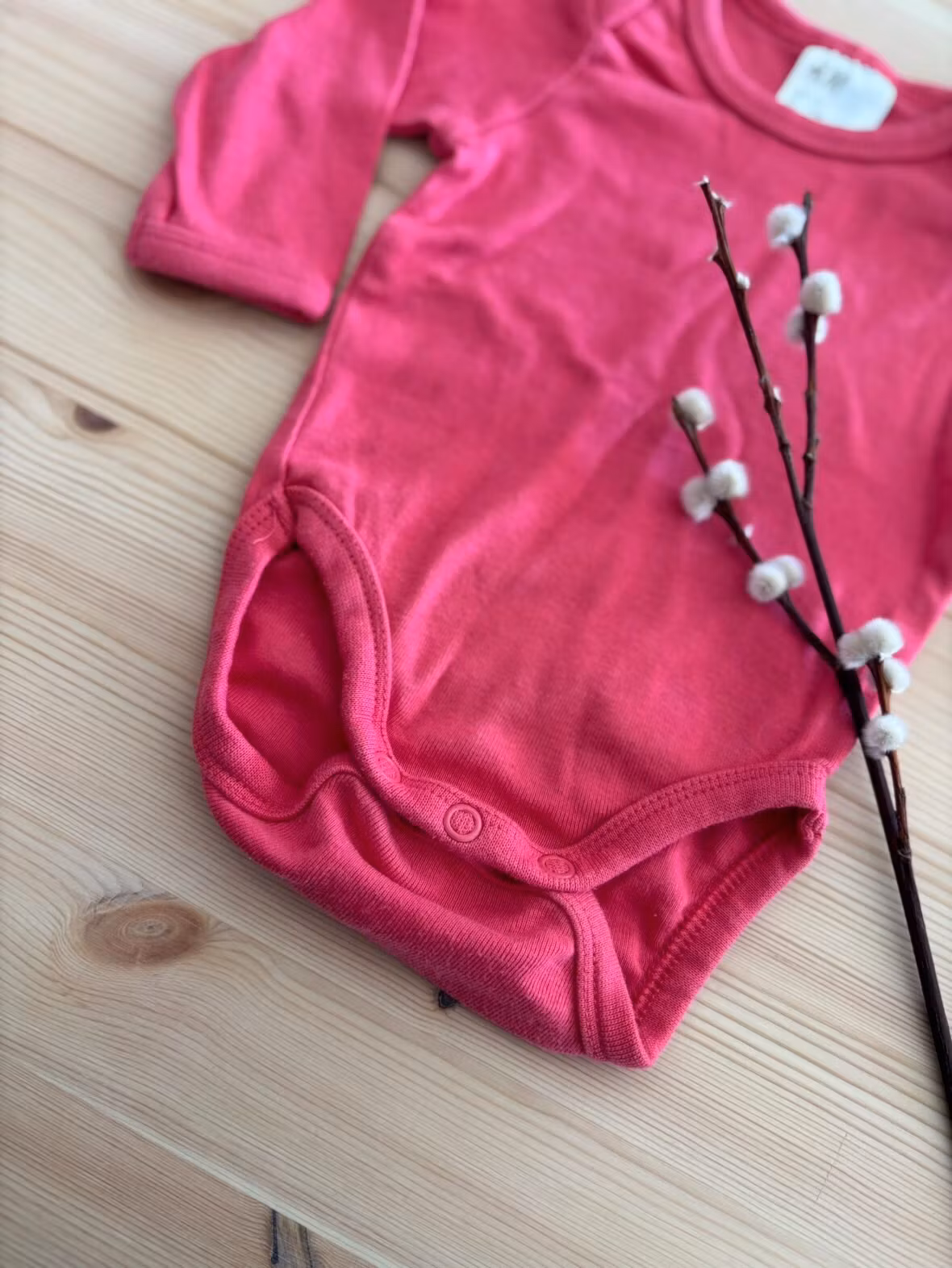 Starkt rosa body med långa armar.kommer från H&M och är i storlek 56.Prisvärt och hållbart alternativ.