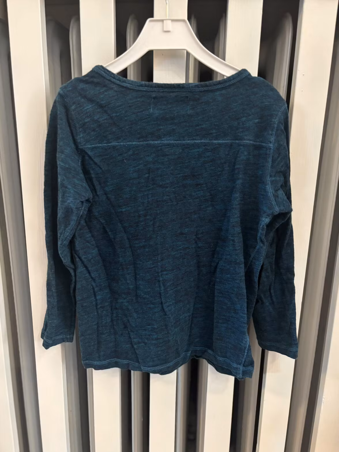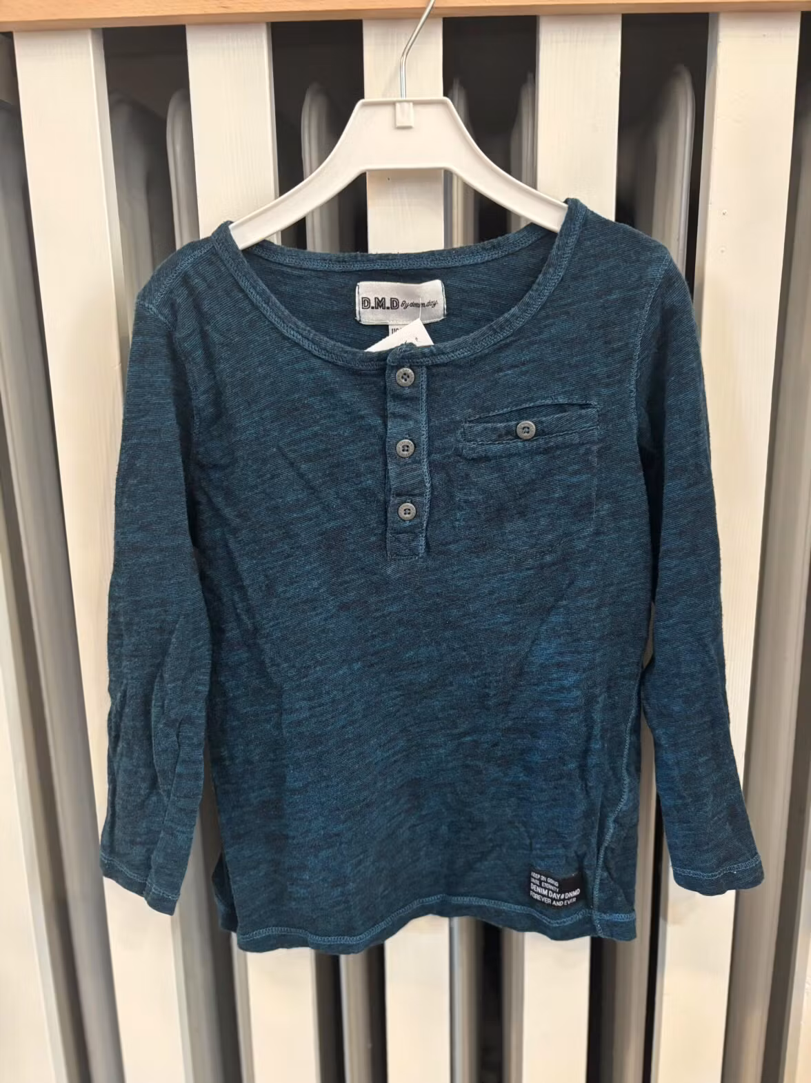 Snygg långärmad tröja i en läcker svart-blå färg.Kommer från d.m.d, har snygga knappar framtill och en ficka på bröstet.Prisvärt och hållbart alternativ.