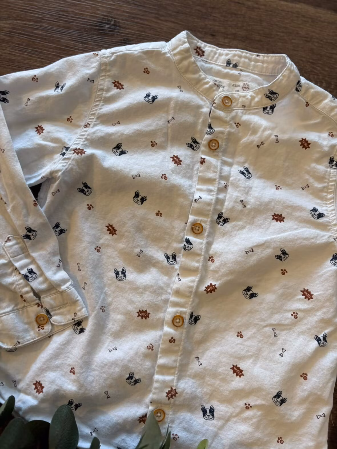 Mycket snygg skjorta från Zara babyBoy collection.Fin modell med dekorativa knappar och härligt hundtema.Bra, hållbart & prisvärt val.