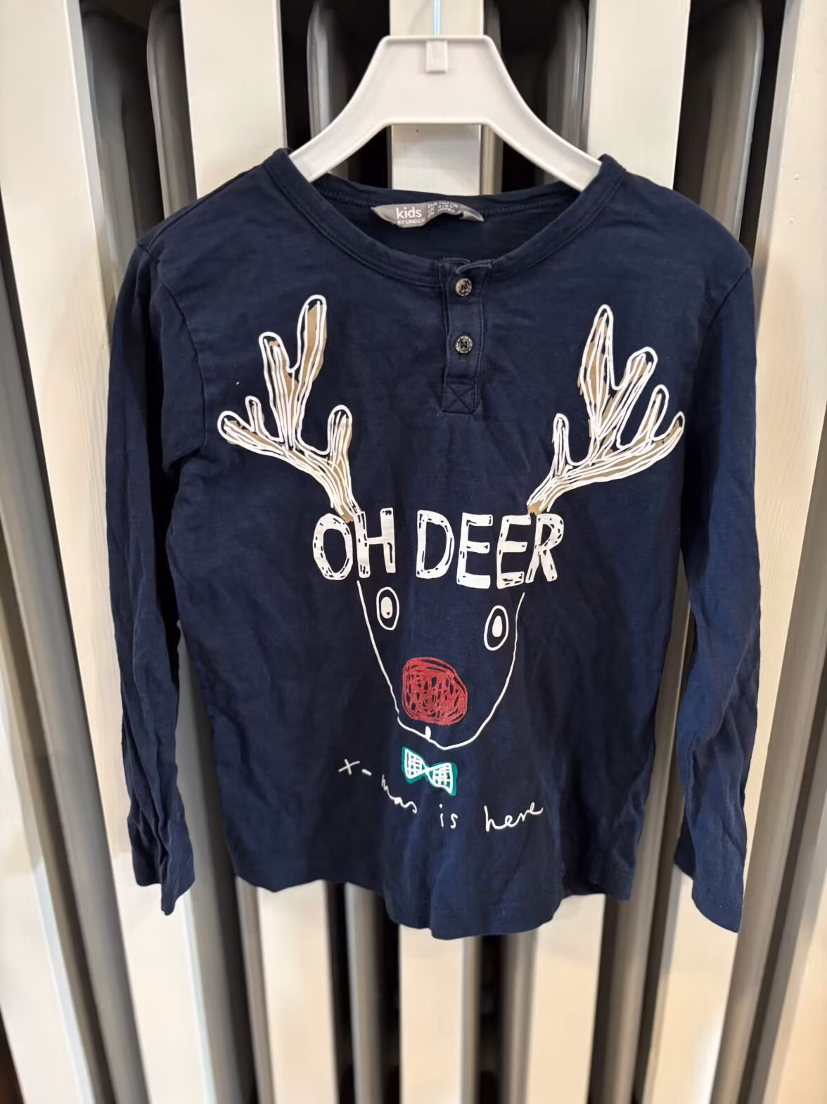 Långärmad T-shirt med två knappar upptill och ett väldigt sött tryck ”oh deer”.Tröjan kommer från Kids by Lindex och är i storlek 110/116.