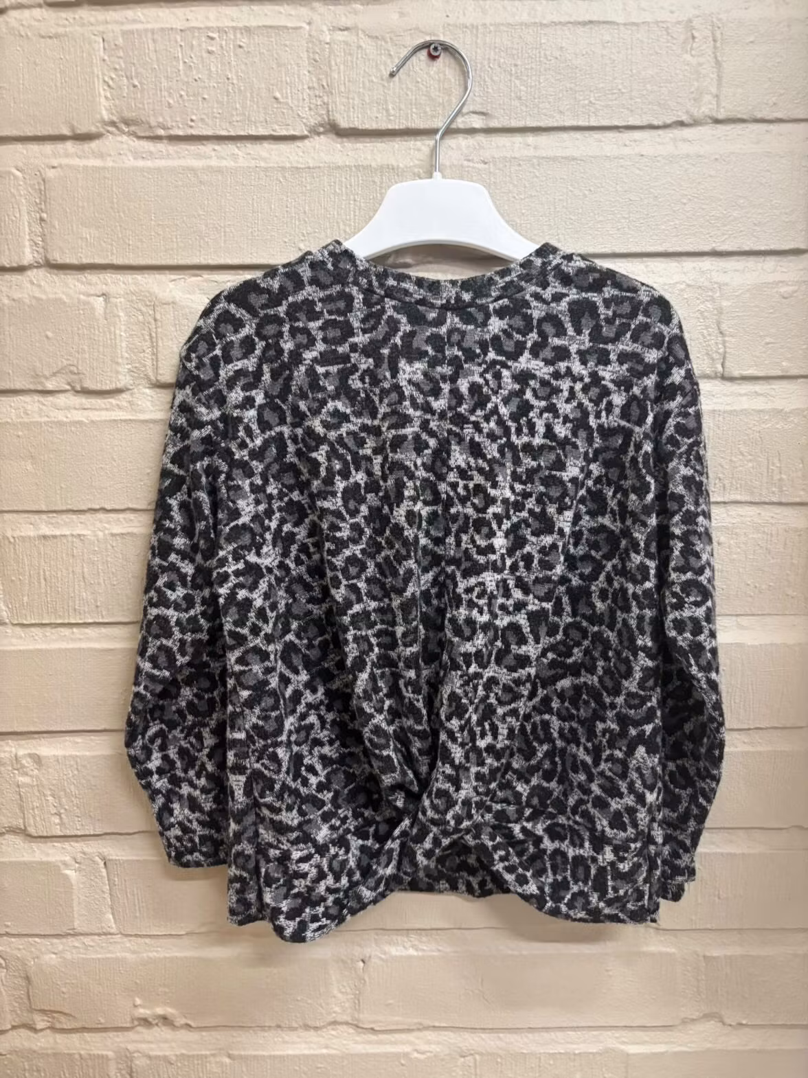 Leopardmönstrad second hand topp med tvist nertill.Från ZARA i storlek 122.Väldigt mjukt och härligt material.Hållbart och prisvärt val.