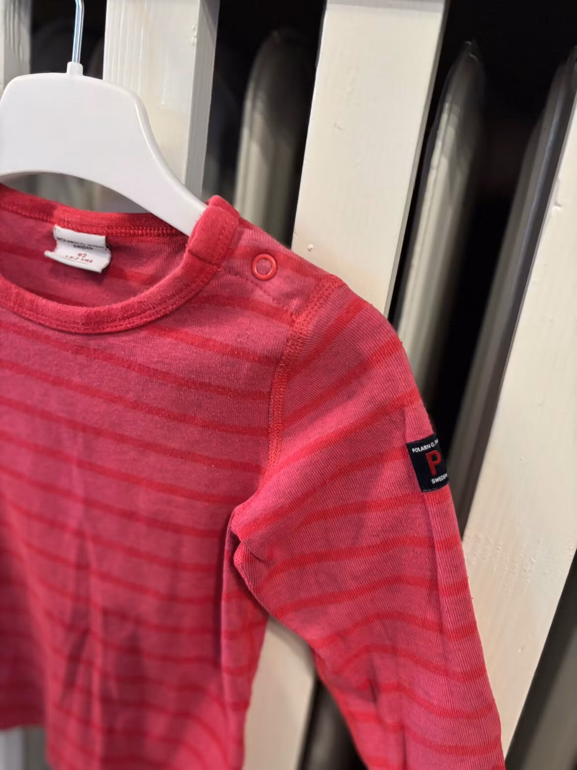 Mycket fin tröja i klara rosa färger från Polarn. O pyret.Två tryckknappar vid ena axeln för att lättare få av och på plagget.Prisvärt och hållbart alternativ.