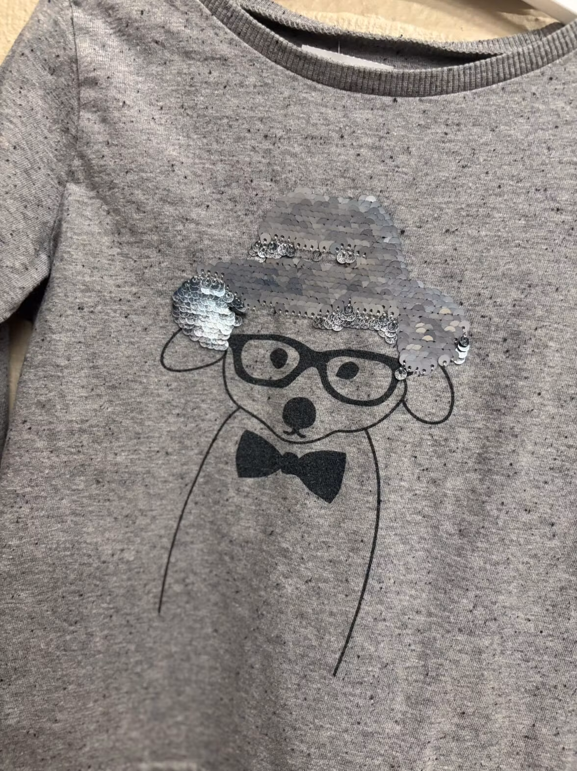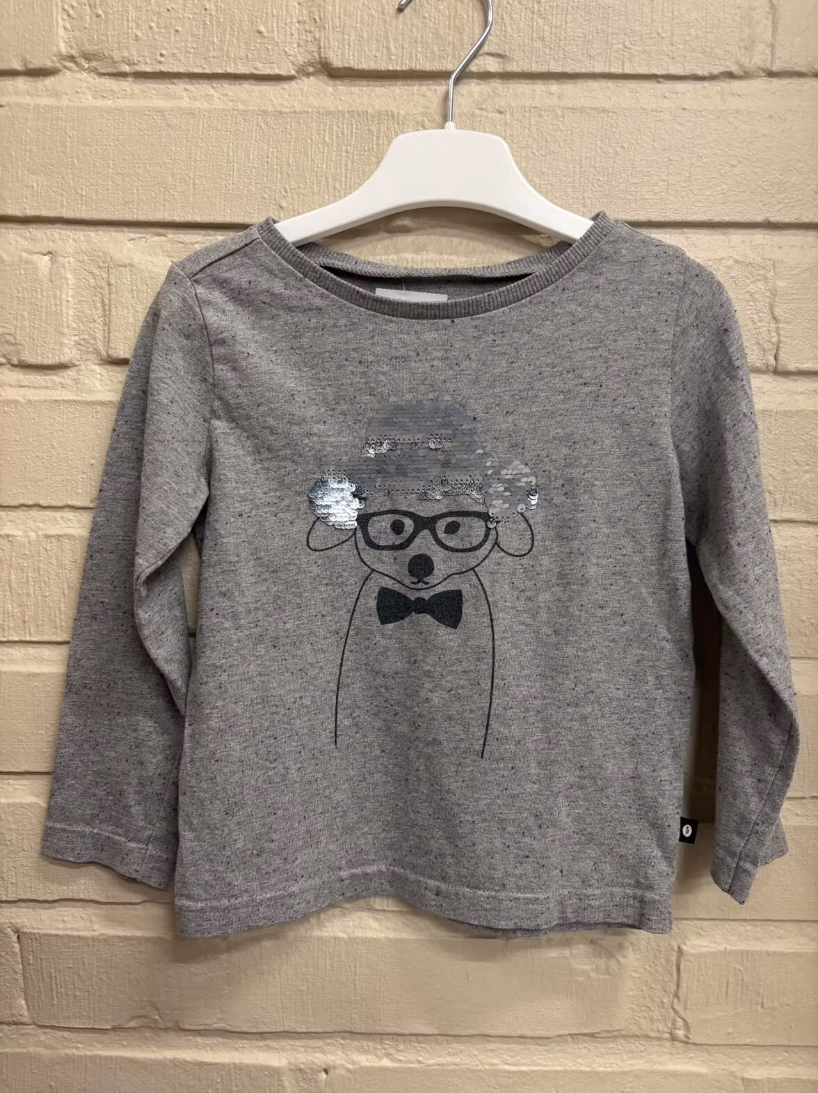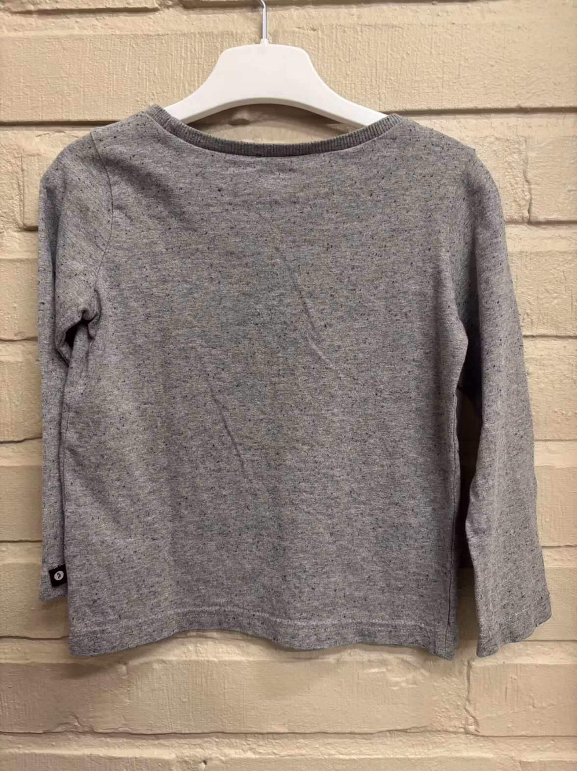 Långärmad second hand T-shirt från POMPdeLUX. Storlek 104, passar både till flocka och till pojk.Hållbart och prisvärt val.